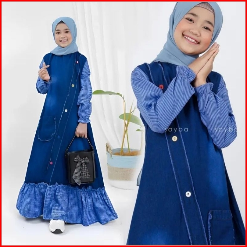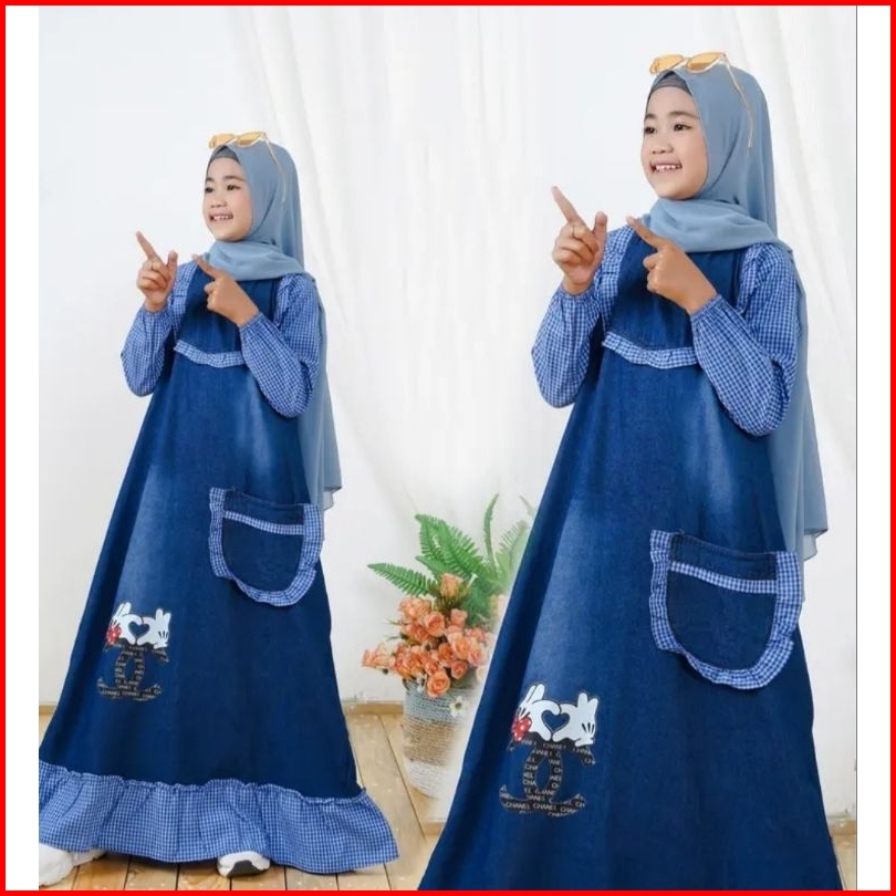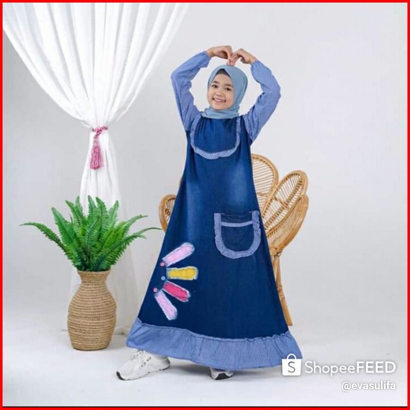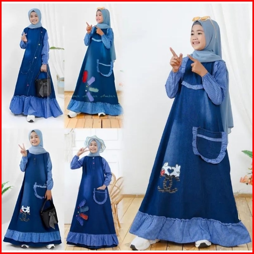 Jeans Washed Premium Anak Mix Katun - Gamis Jeans Anak Dres Anak Gamis Jeans By Fais Collection