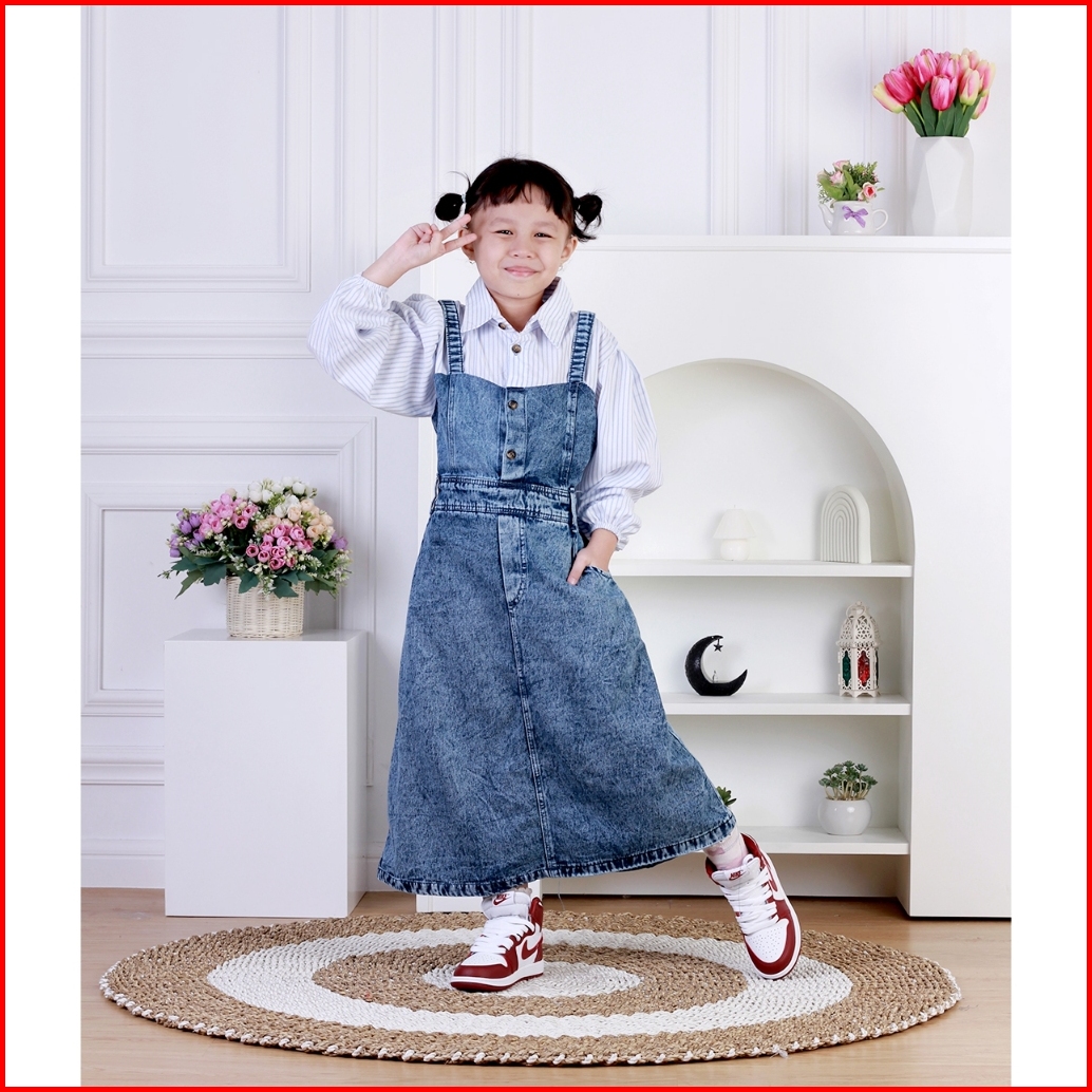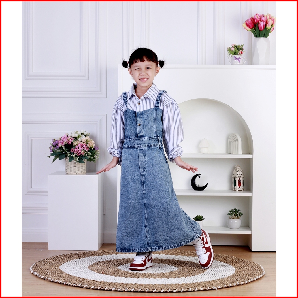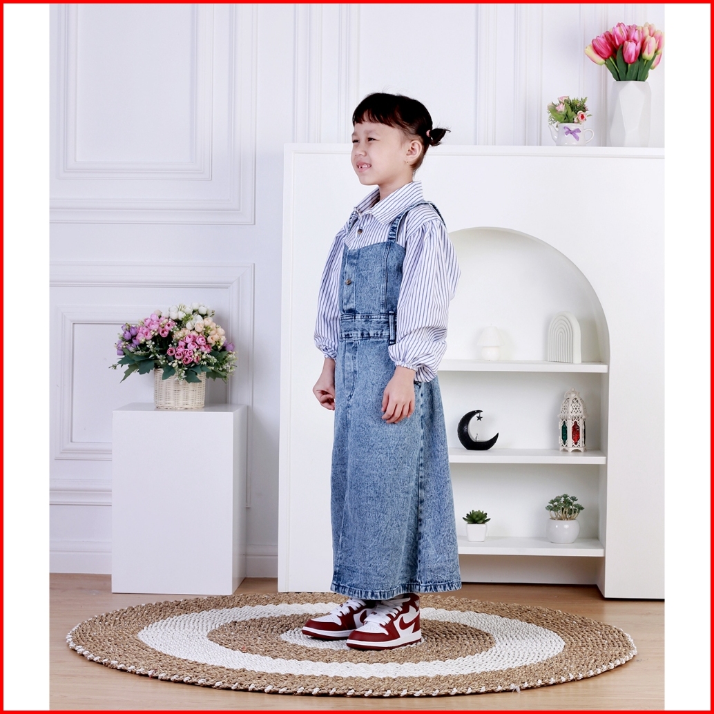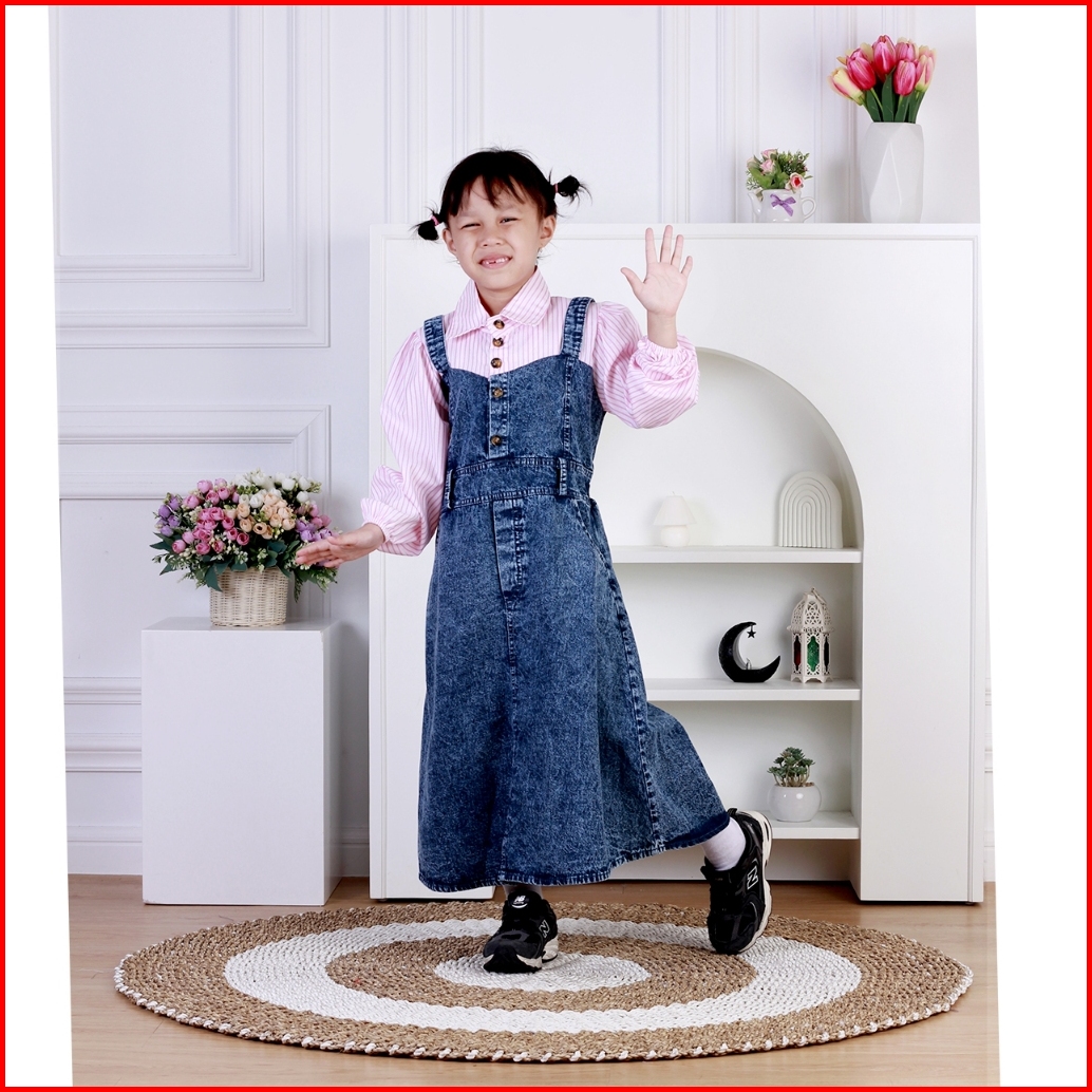 Dungdungkids Gamis Anak Calesta Overall Jeans Salur 3 - 12 Tahun