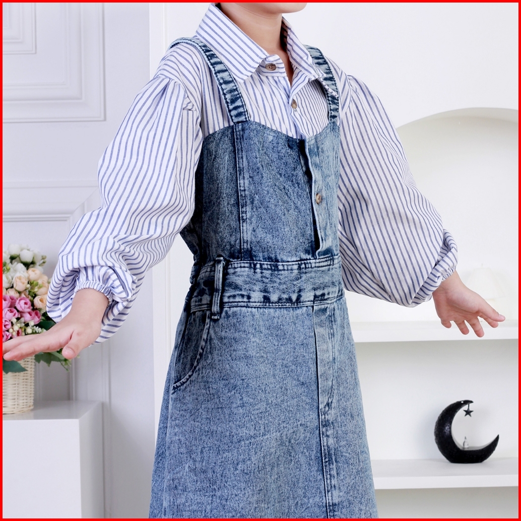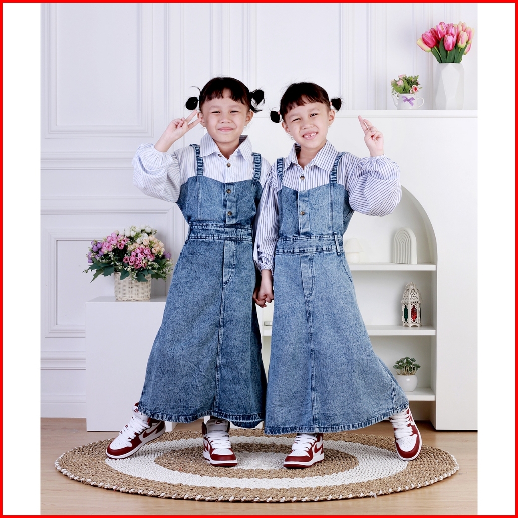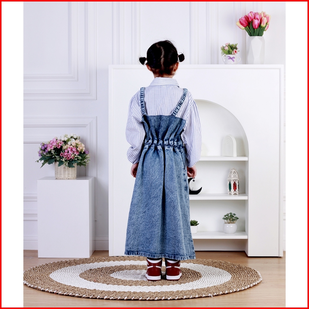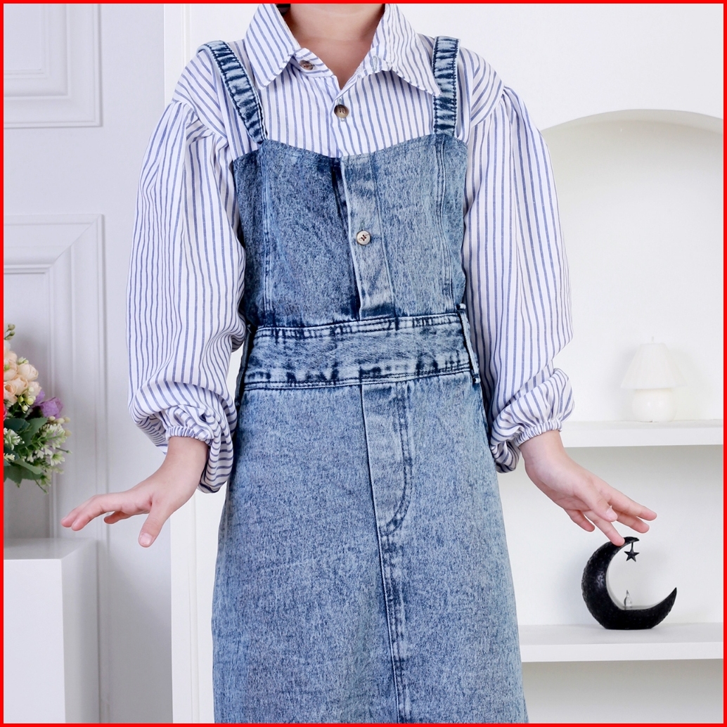 Dungdungkids Gamis Anak Calesta Overall Jeans Salur 3 - 12 Tahun