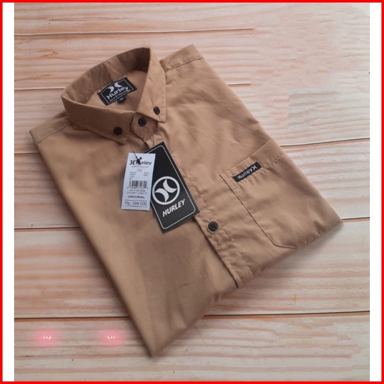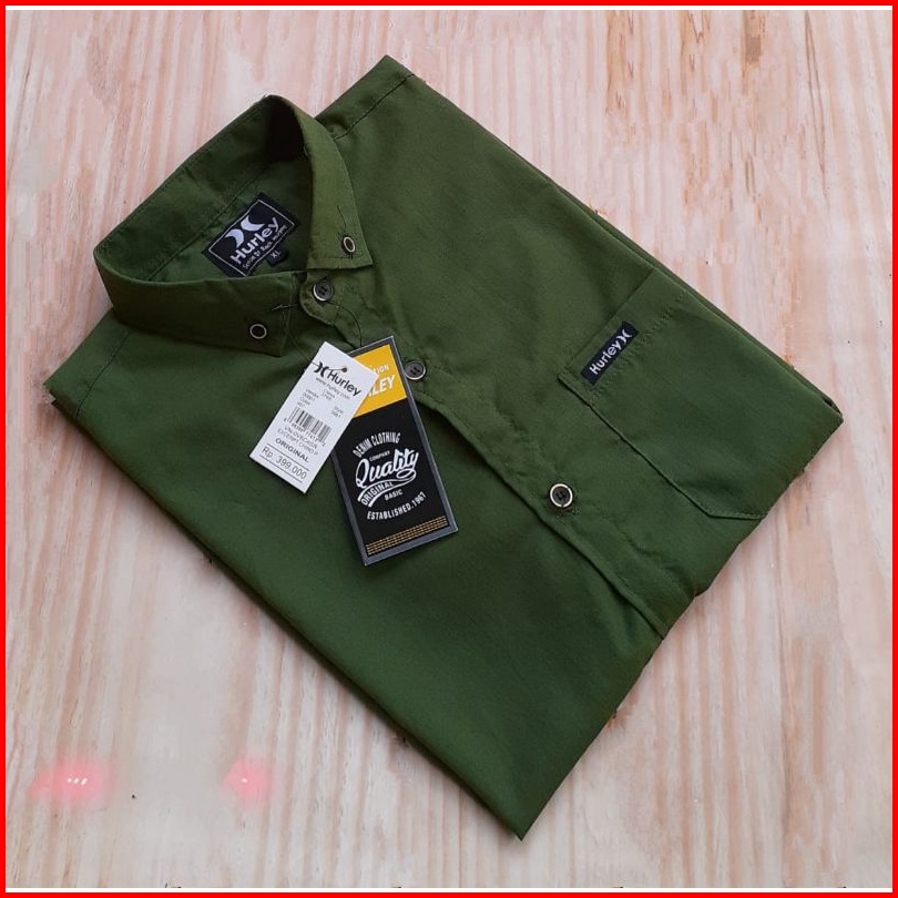 Kemeja Polos Pria Lengan Pendek Hijau Army Boyi Top Man Hem Kerja