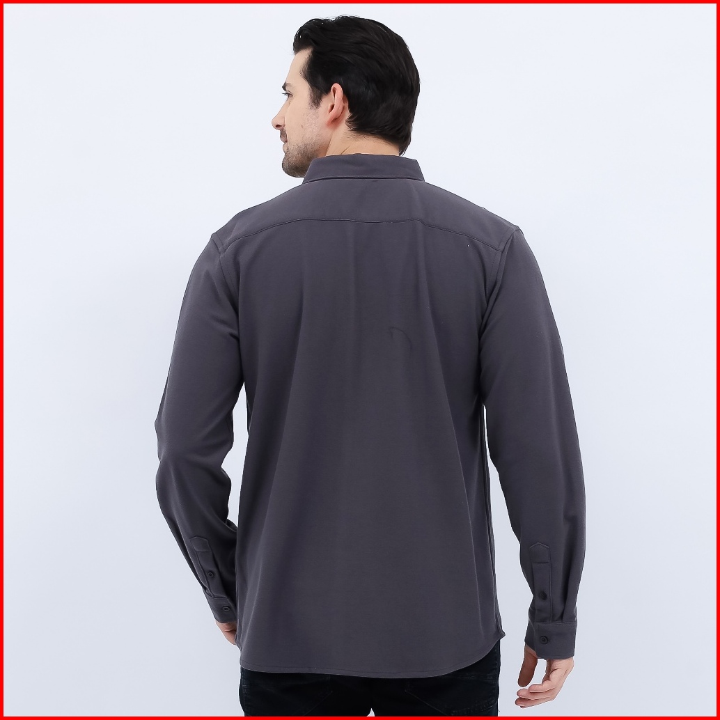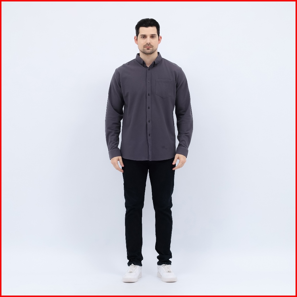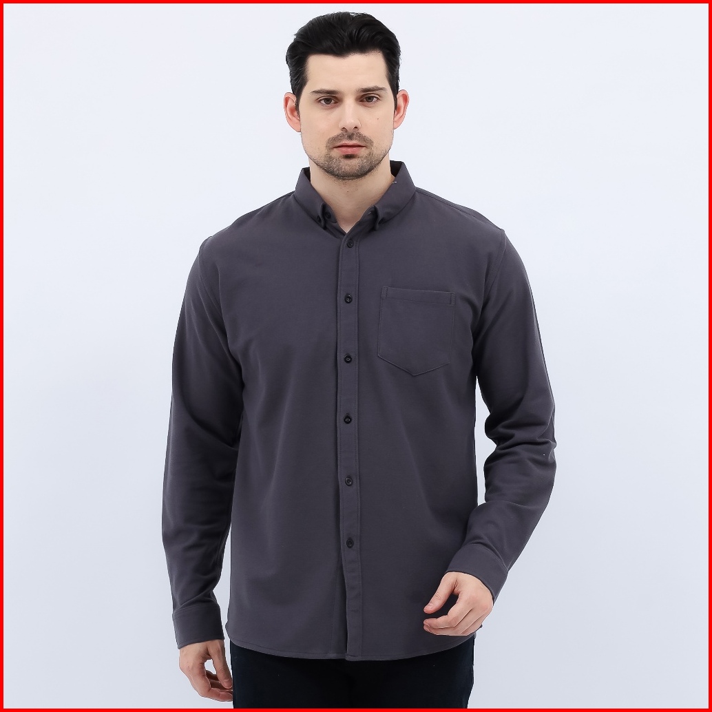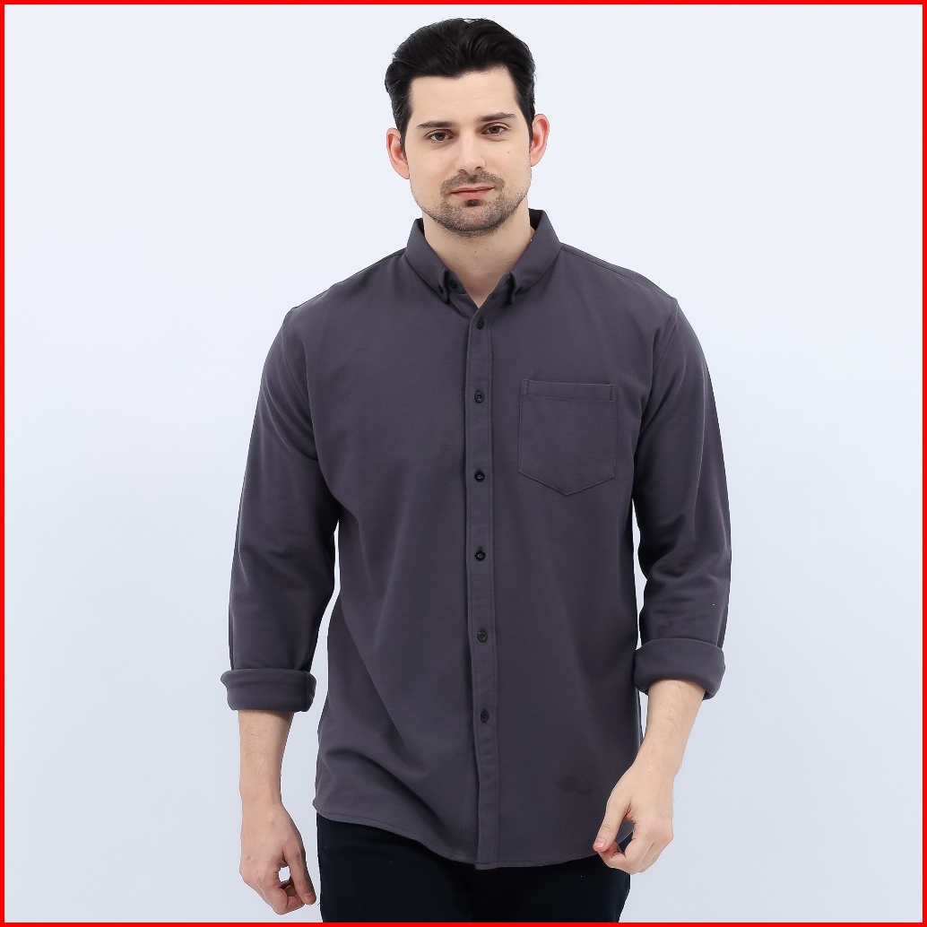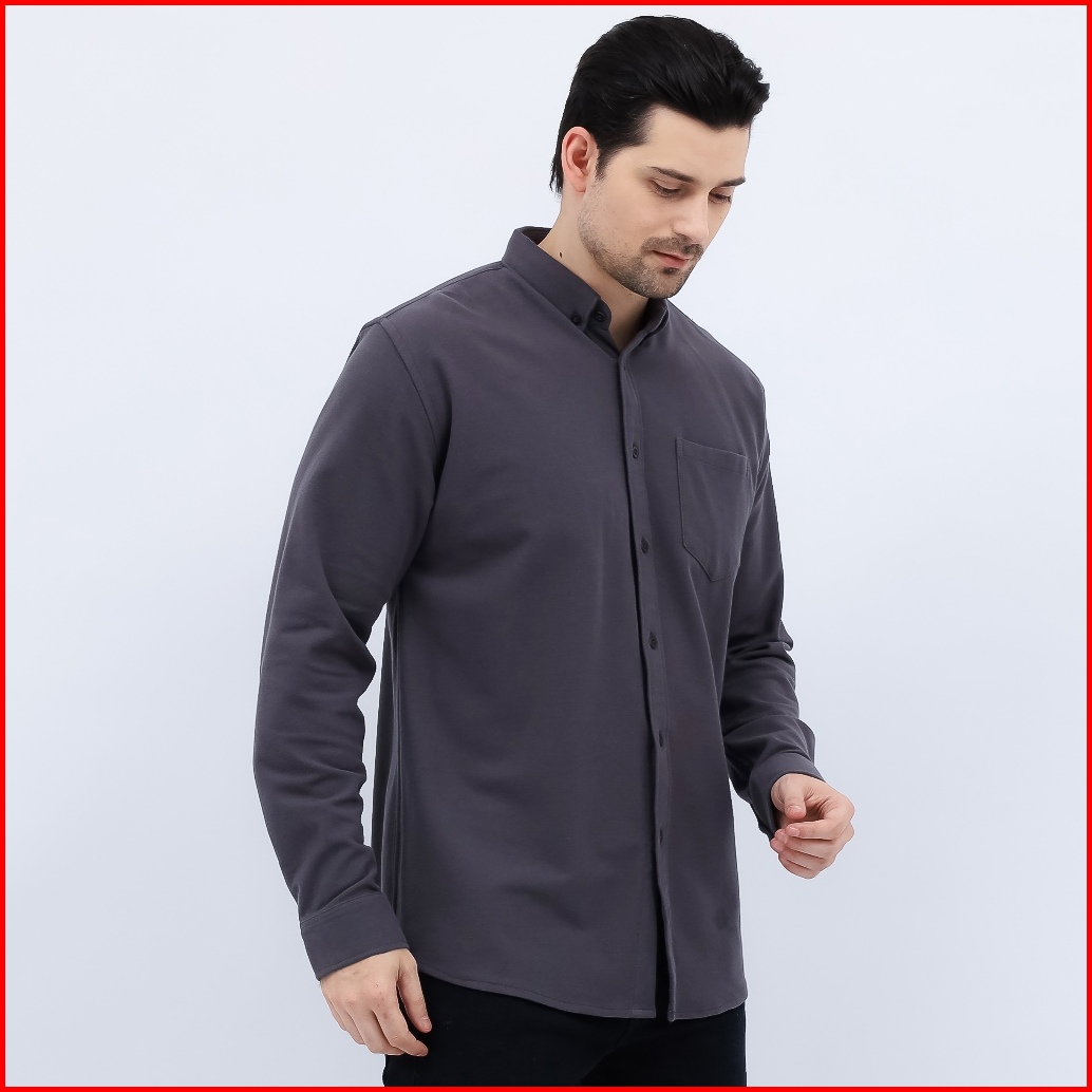 Kemeja Pria Lengan Panjang Original Abu Tua Cotton Pique Premium Polos Formal Casual Keren Kekinian