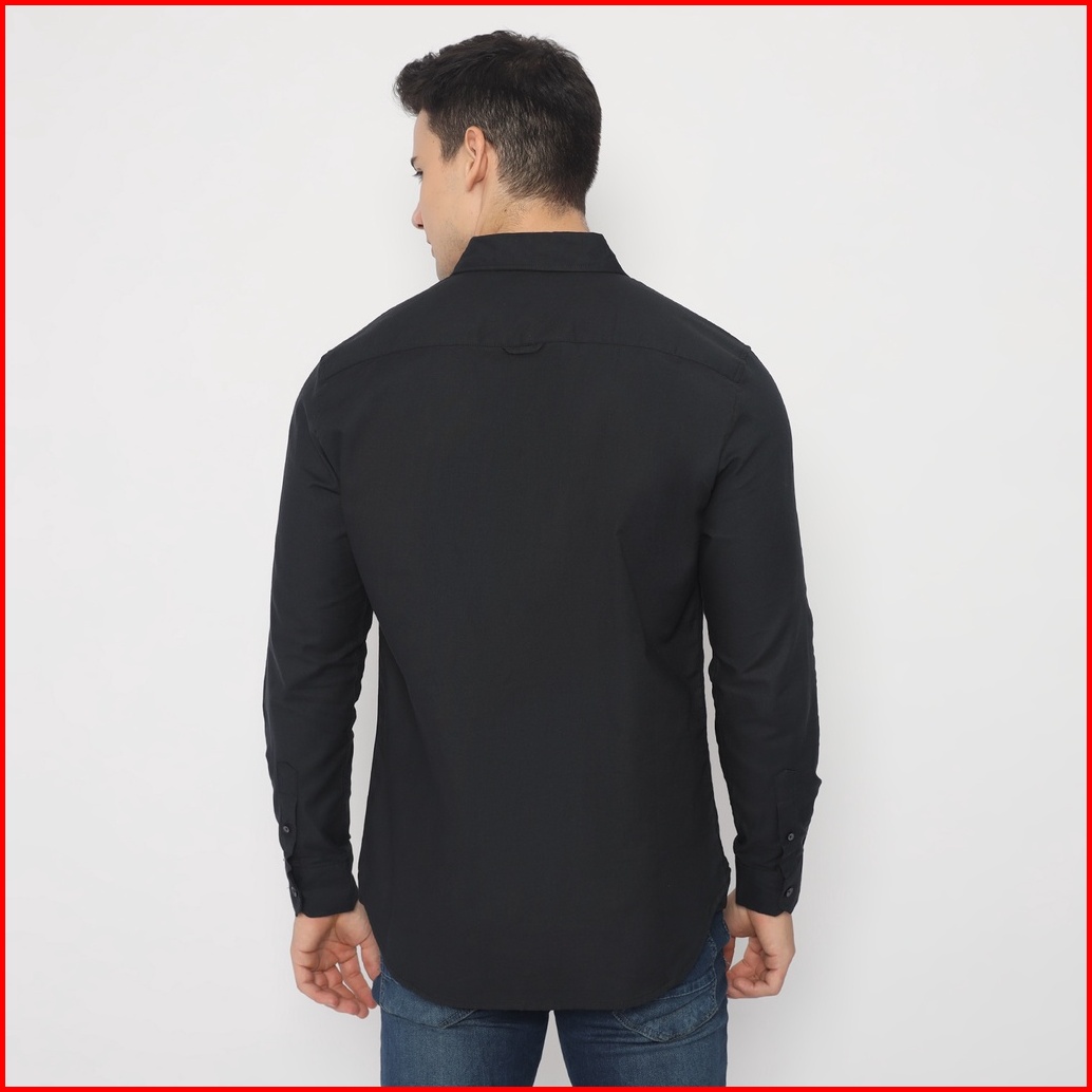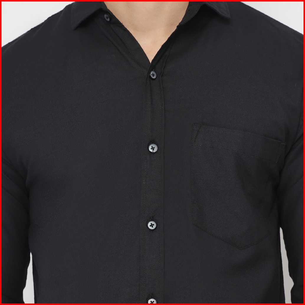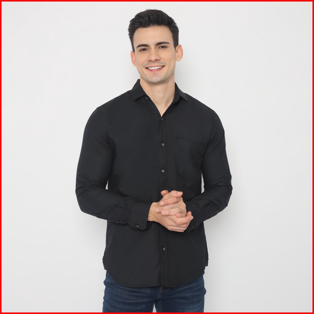 Fichino Kemeja Pria Basic Polos Lengan Panjang Hitam