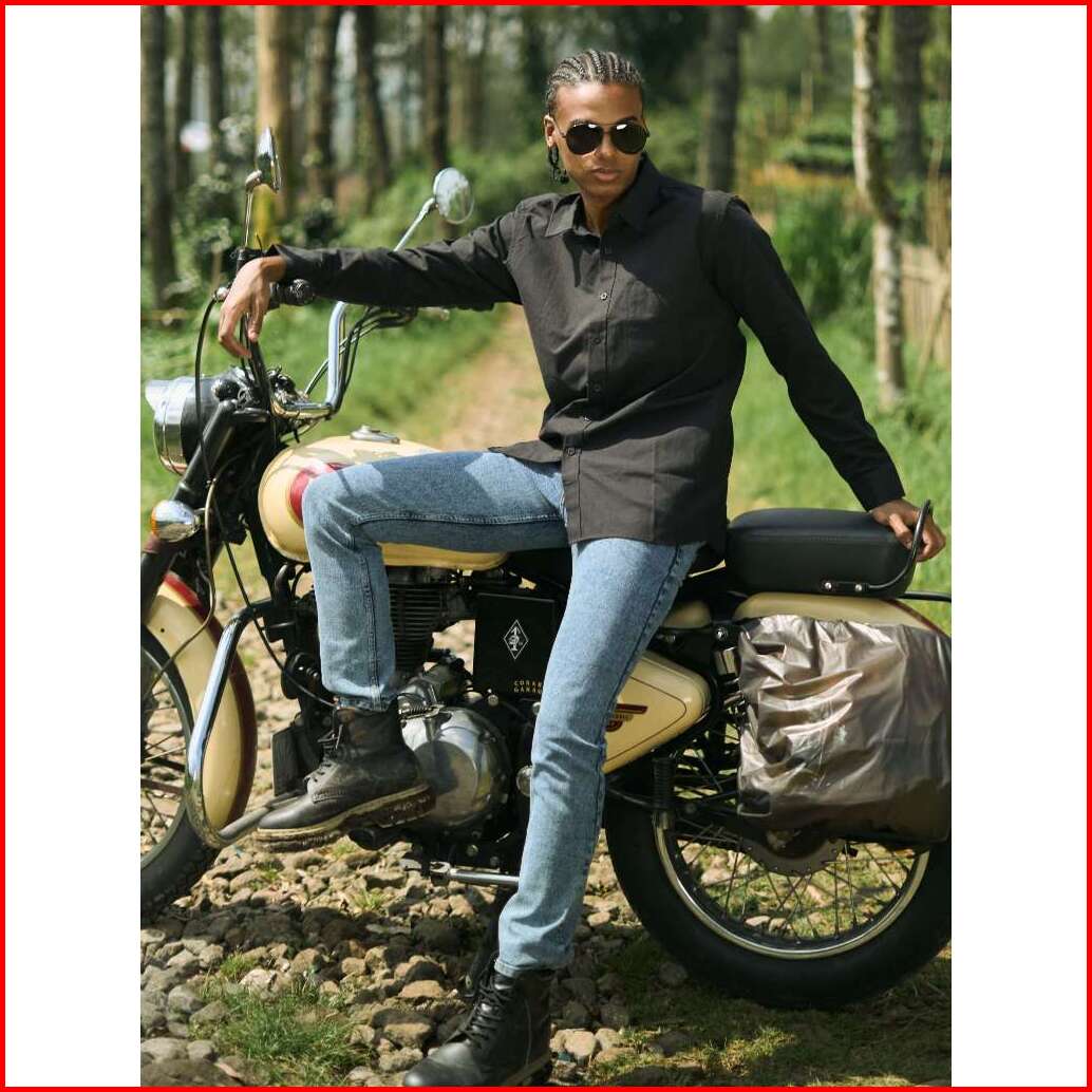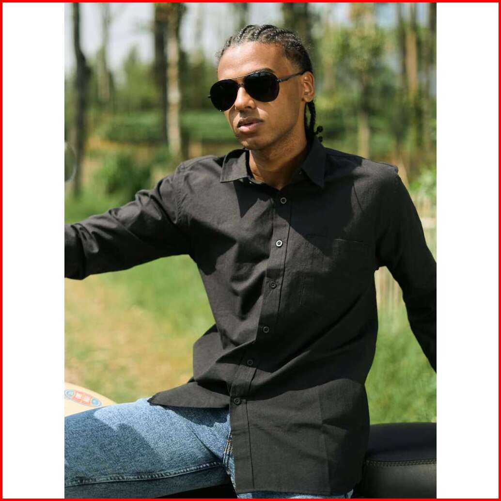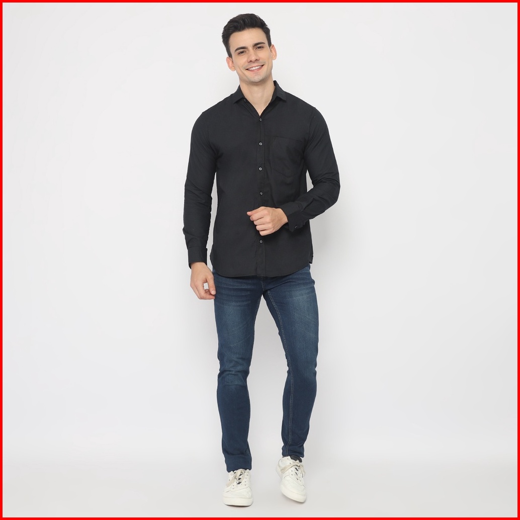 Fichino Kemeja Pria Basic Polos Lengan Panjang Hitam