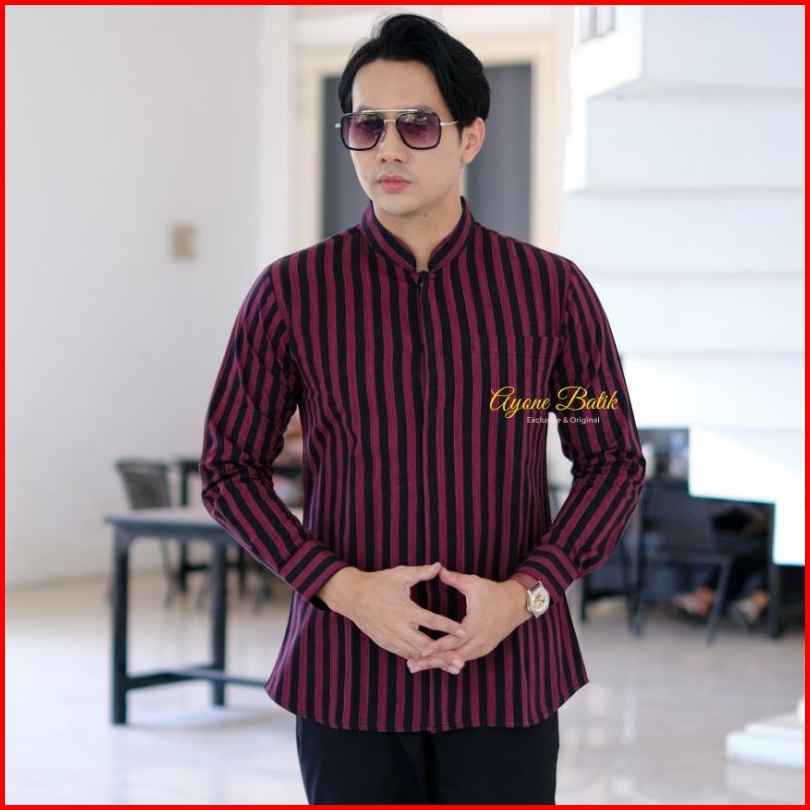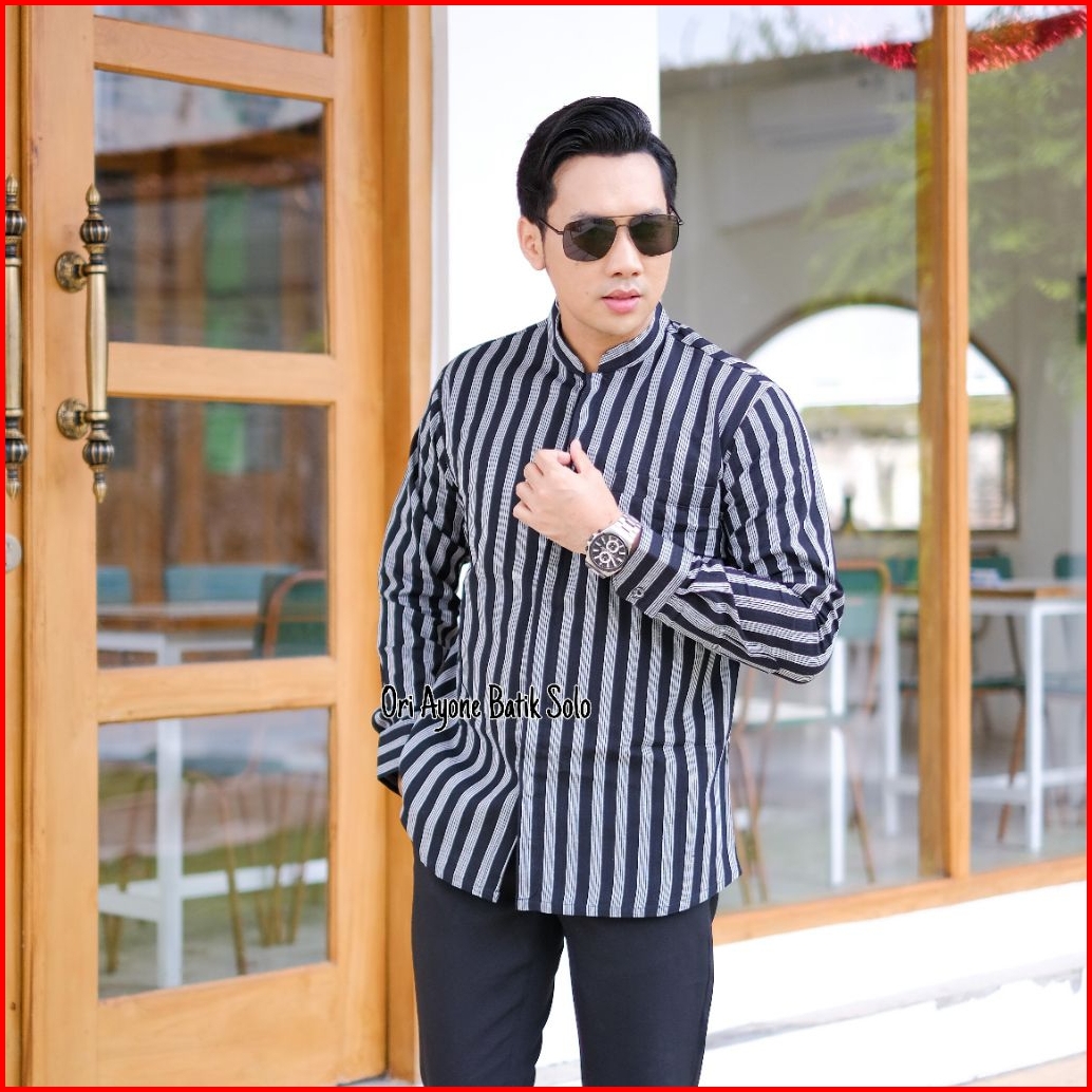 Kemeja Lurik Lengan Panjang Pria Lurik Pria Black Grey Lengan Panjang Kemeja Koko Lurik Kemeja Lurik Coklat Terbaru