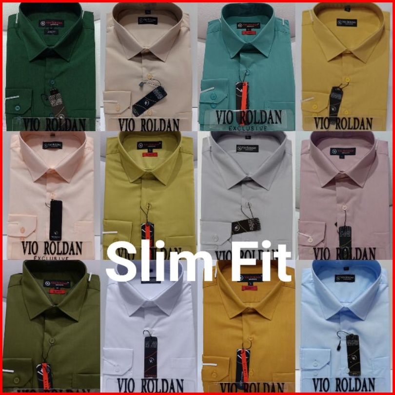 Vio Roldan Kemeja Polos Slim Fit Lengan Panjang Kemeja Katun Kemeja Formal Kemeja Pria