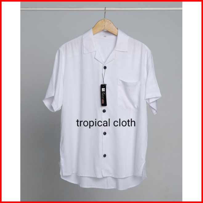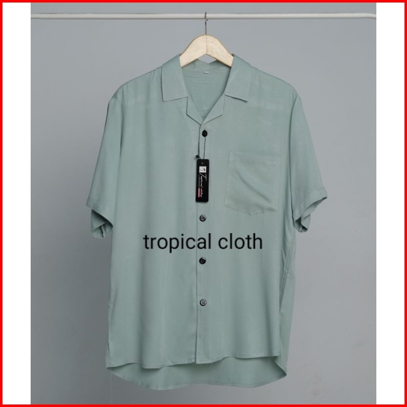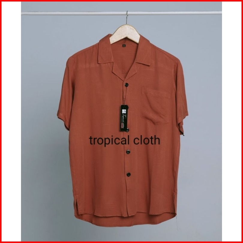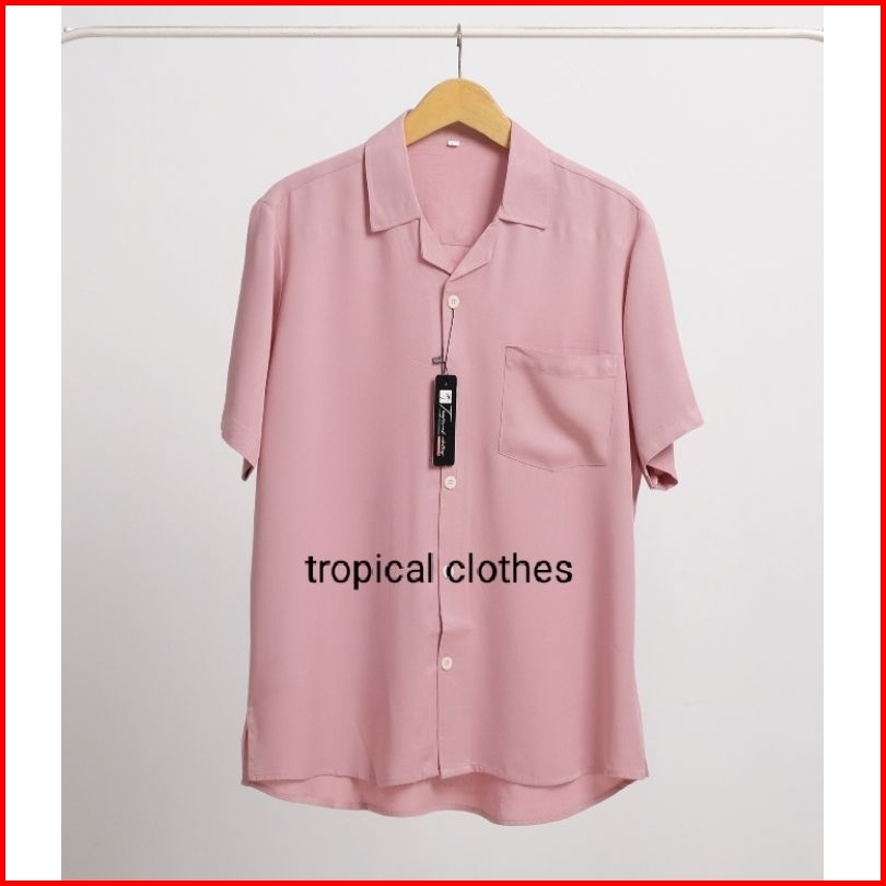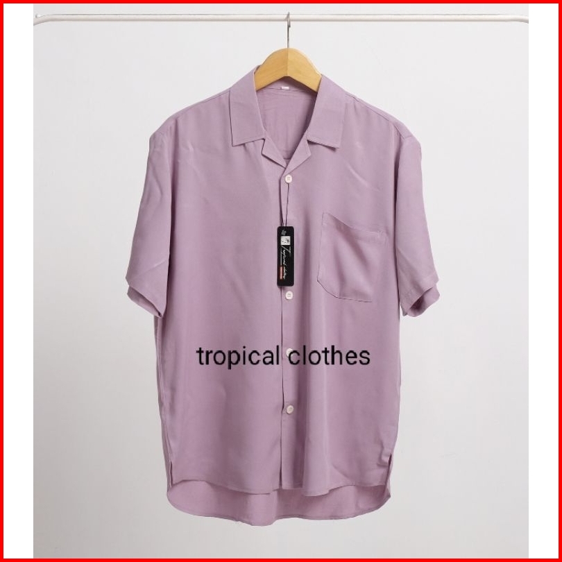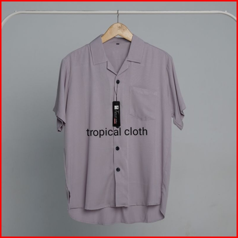Kemeja Polos Lengan Pendak Hawaian Classic Shirt Kemeja Pantai Rayon Kemeja Krah Piama Pria