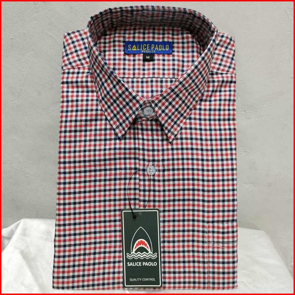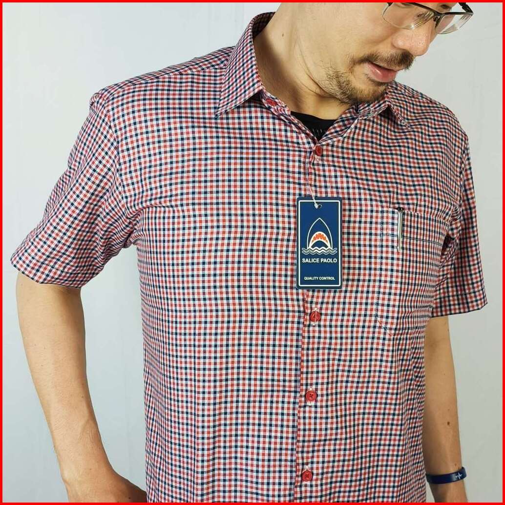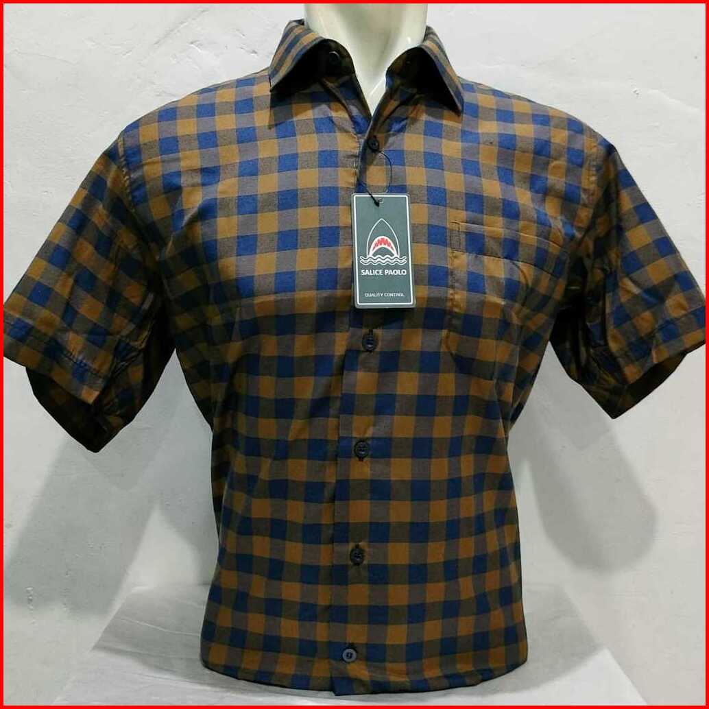 Kemeja Pria Salice Paolo Pendek Reguler Casual Kotak Sigmund Biru Navy