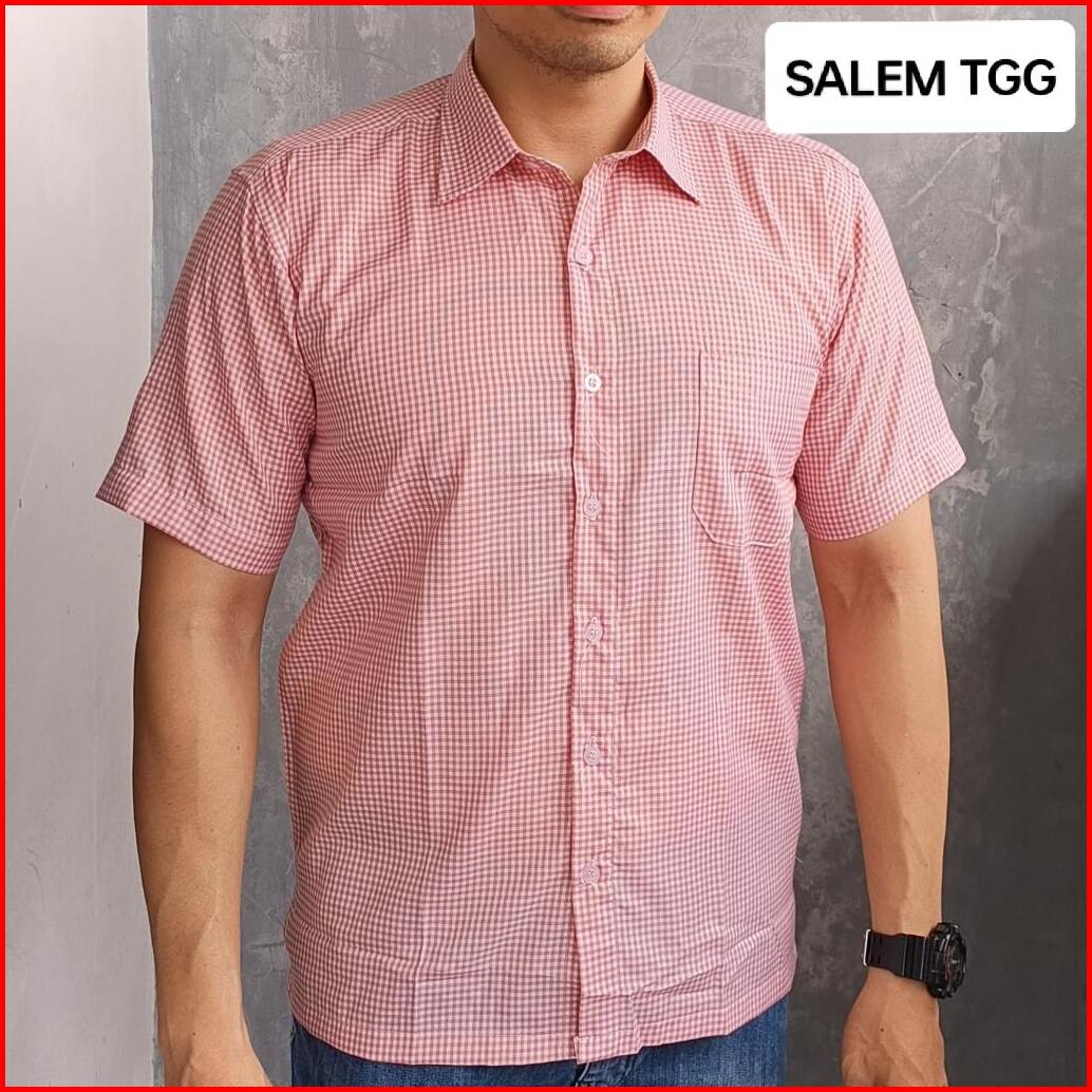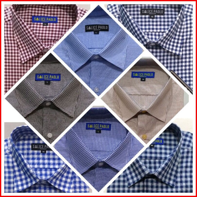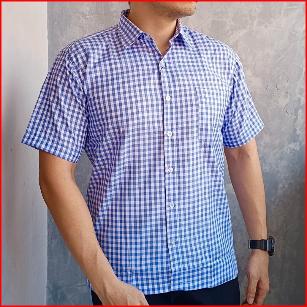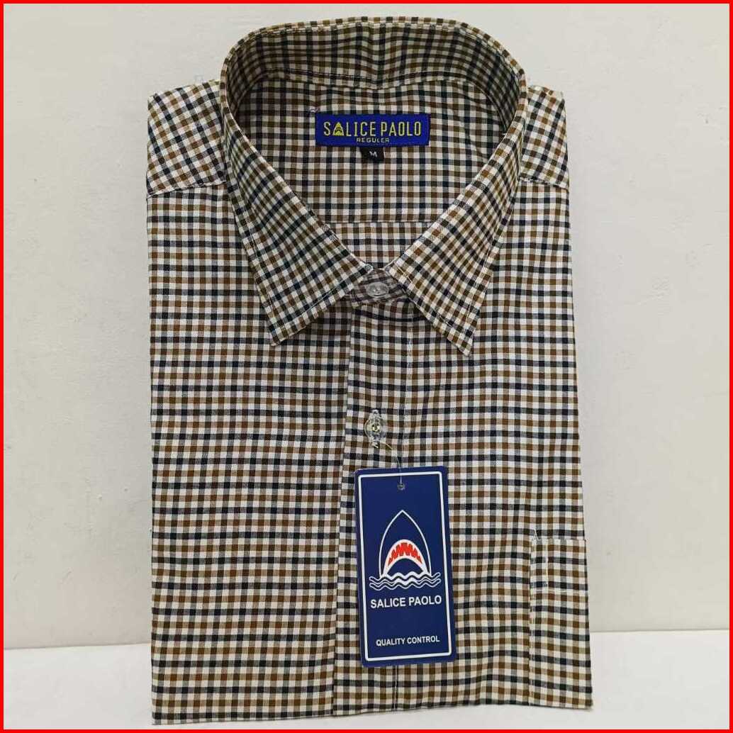 Kemeja Pria Salice Paolo Pendek Reguler Casual Kotak Sigmund Biru Navy