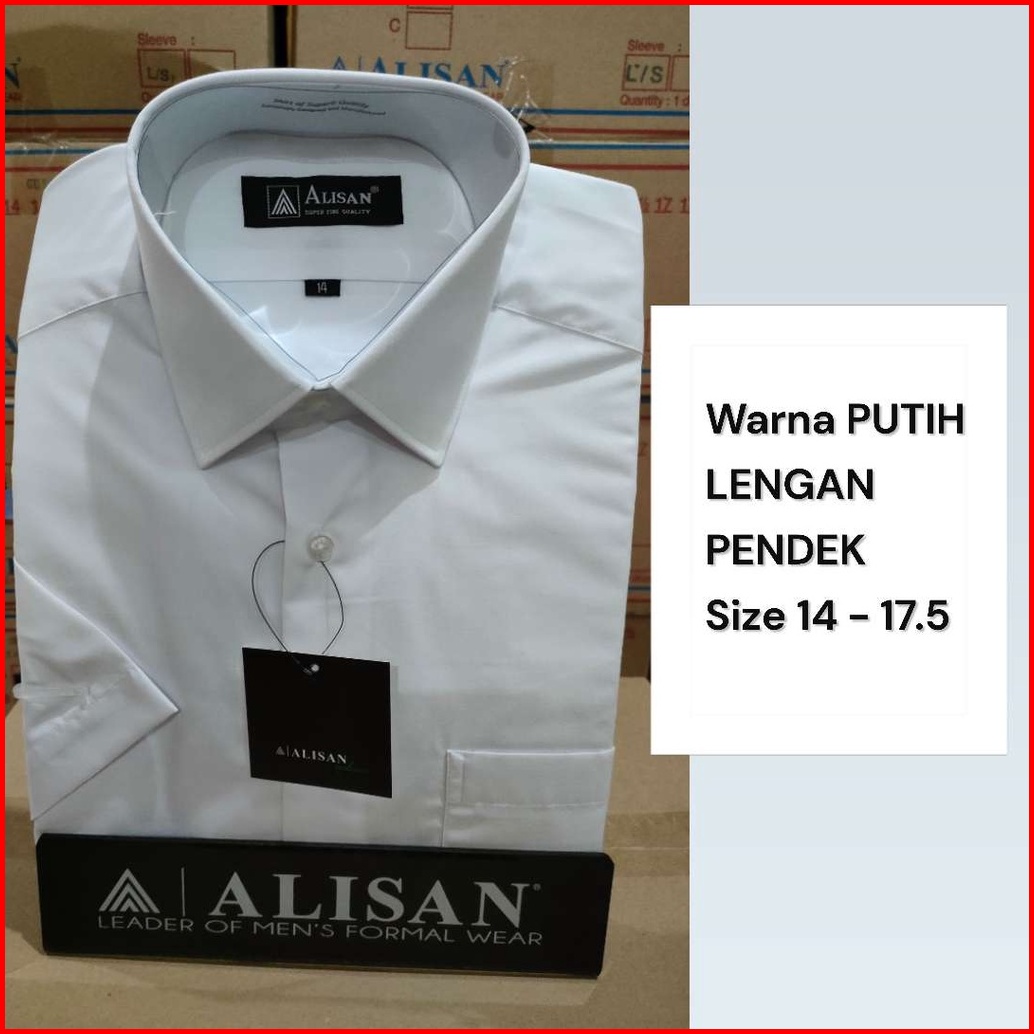 Alisan Kemeja Pria Lengan Pendek Polos Reguler Warna Putih Original