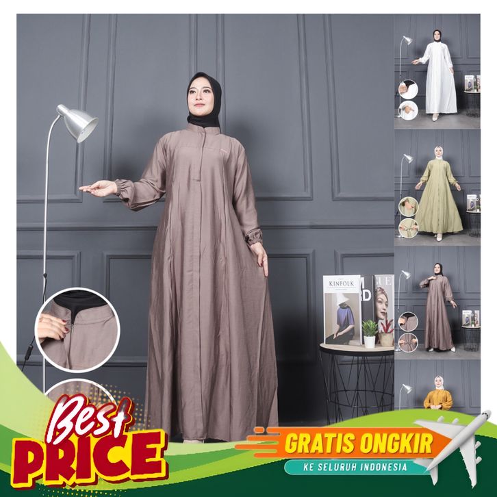 [Mall] Sabrina Dress Gamis Polos Wanita Simpel Elegan Polo Linen Terbaru / Gamis kondangan / Gamis jumbo