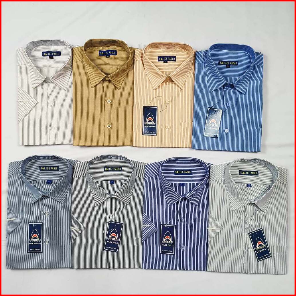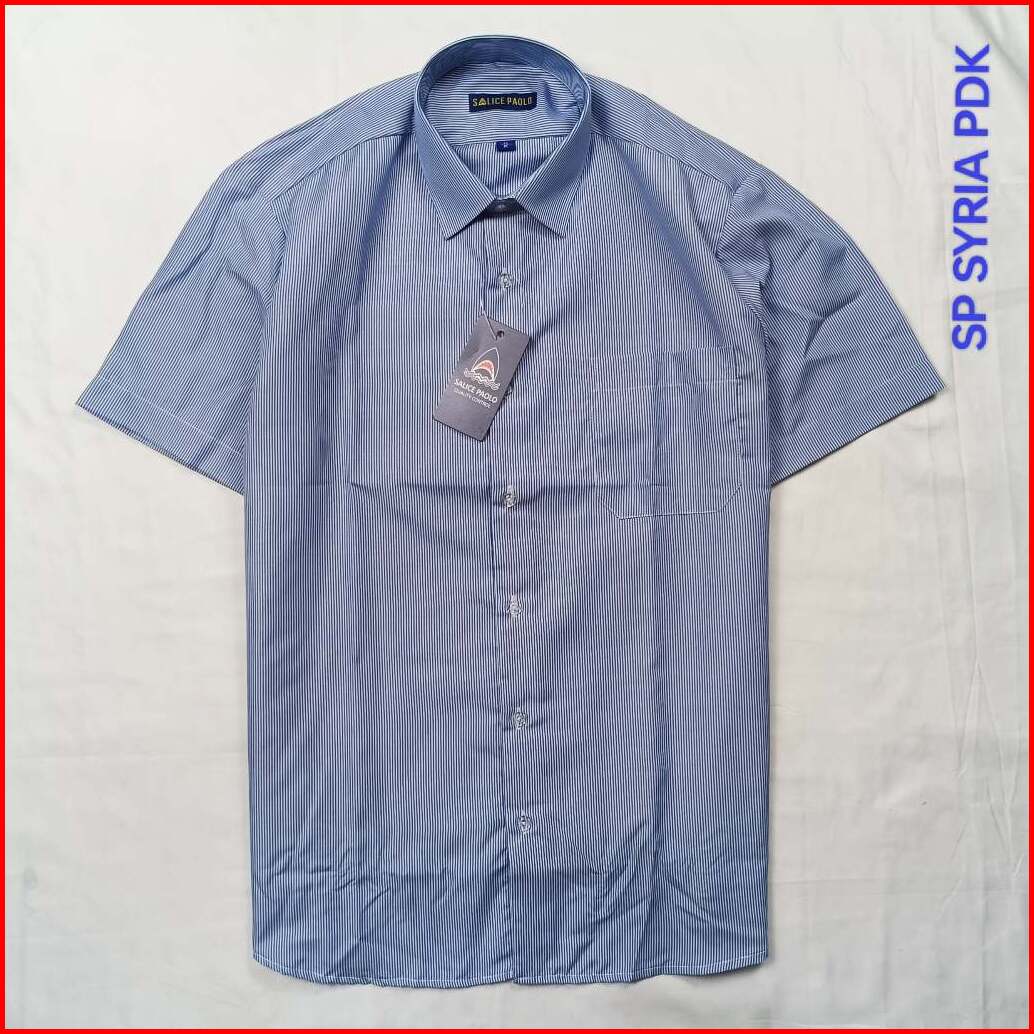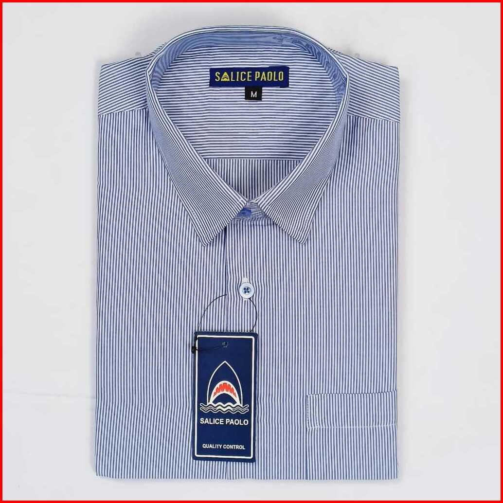 Kemeja Pria Salice Paolo Lengan Pendek Reguler Office Formal Biru Orange Stripe Salur Katun