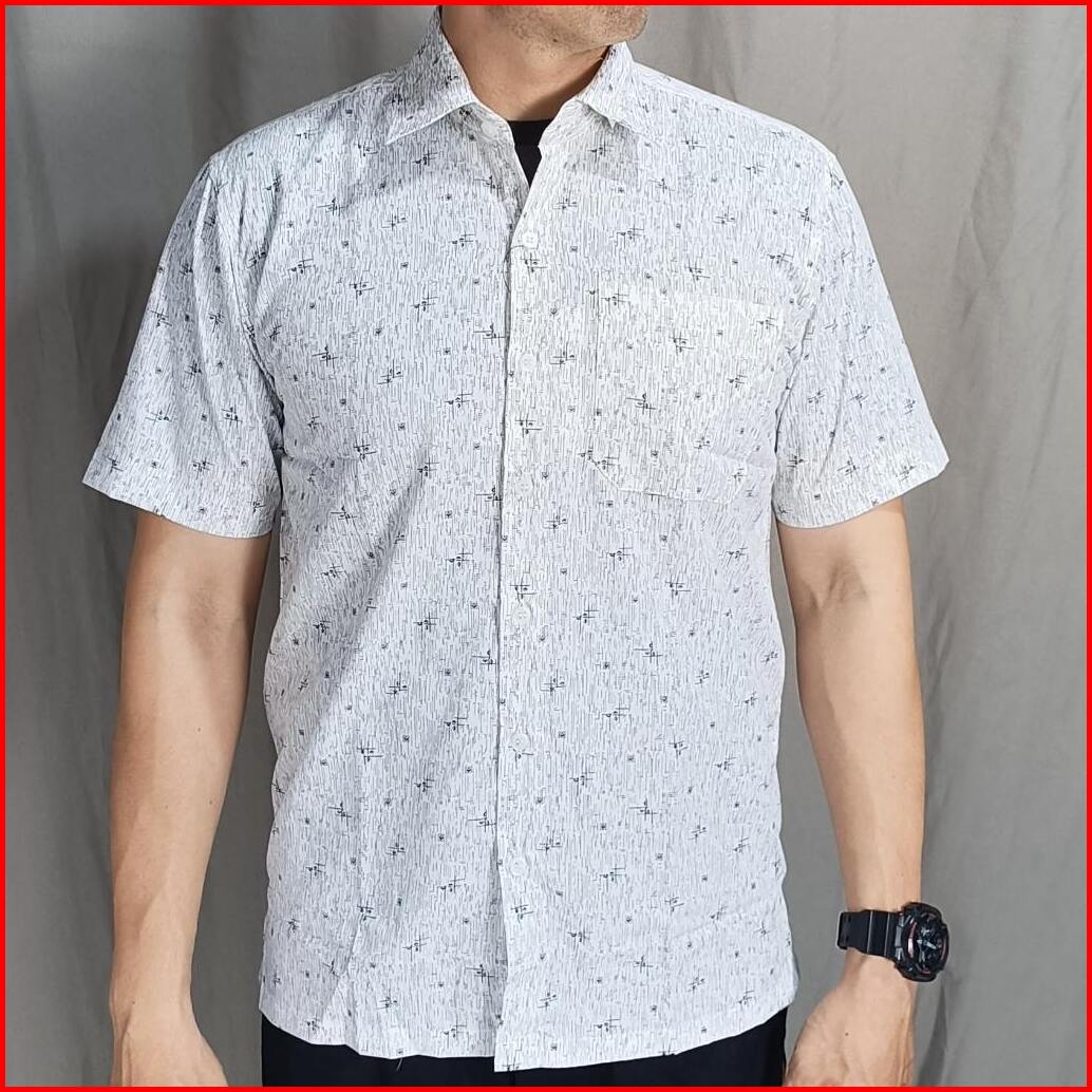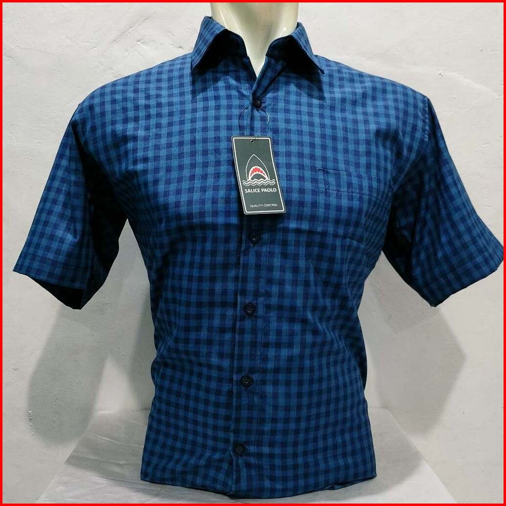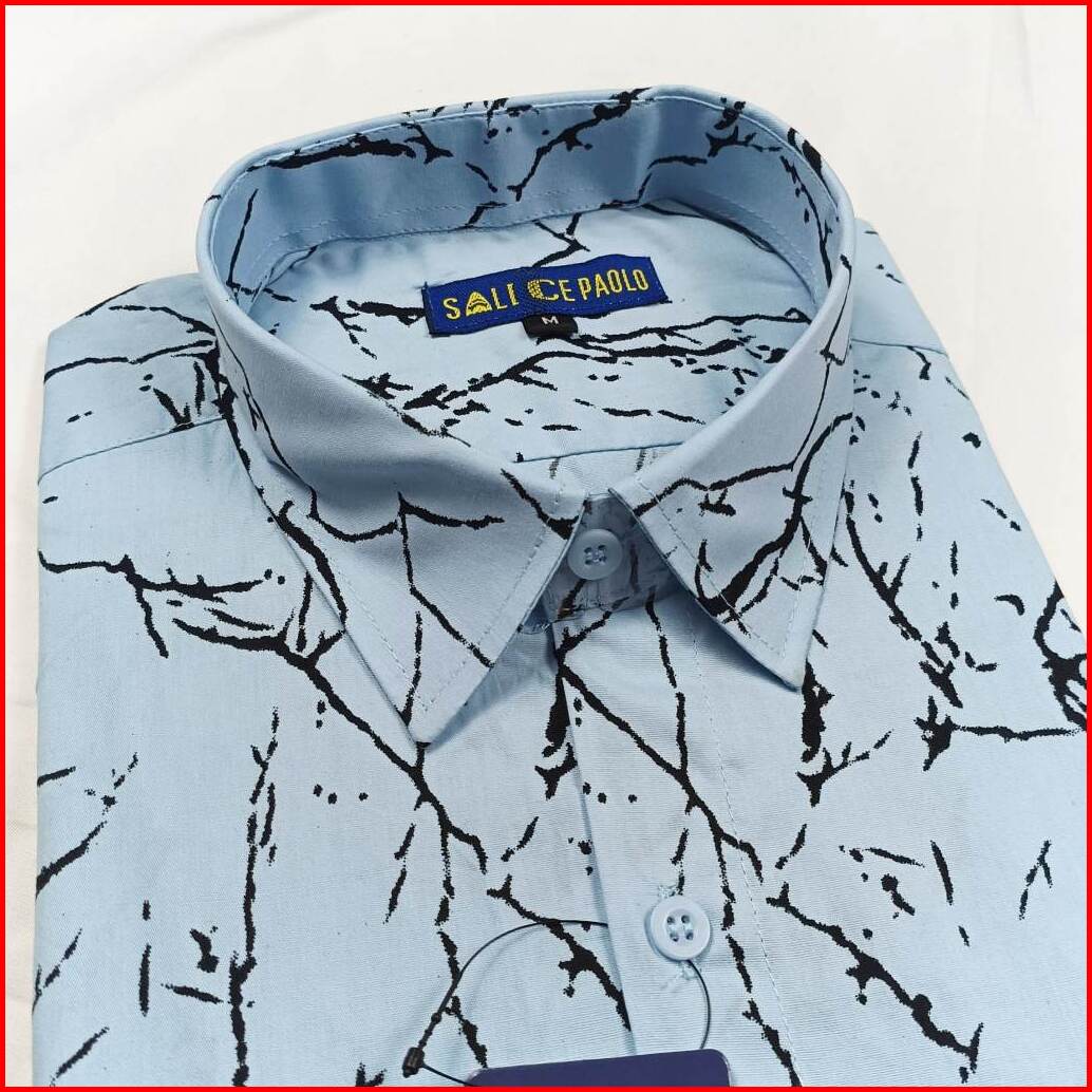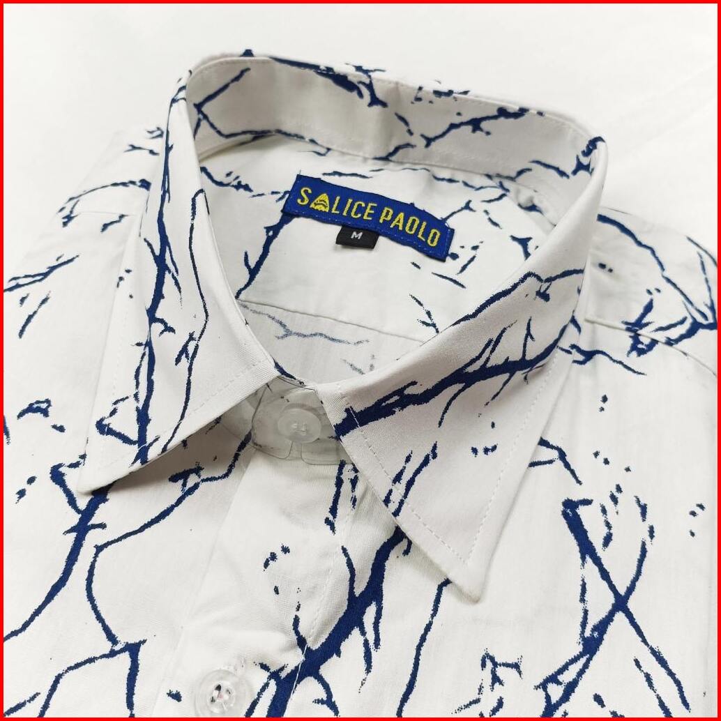 Kemeja Pria Salice Paolo Lengan Pendek Reguler Office Formal Biru Orange Stripe Salur Katun