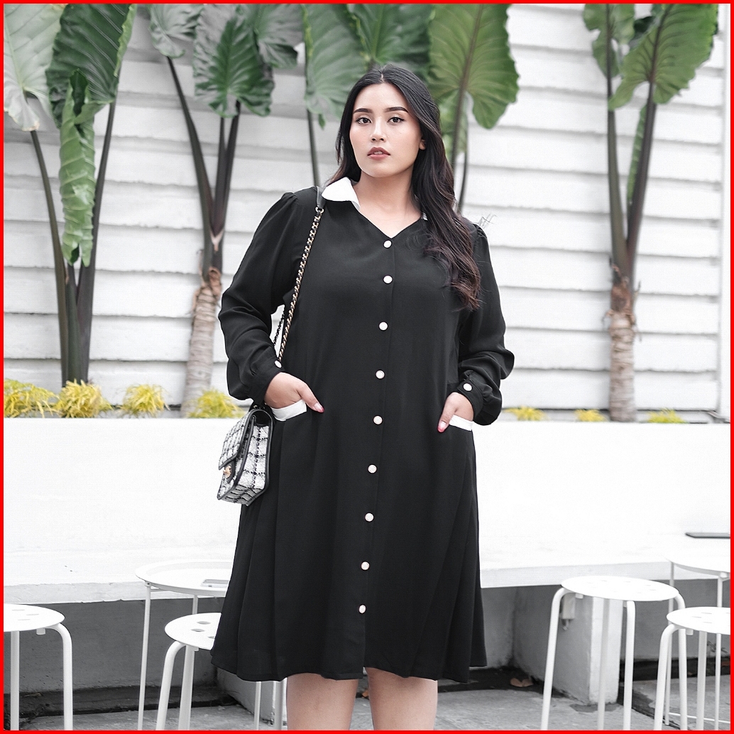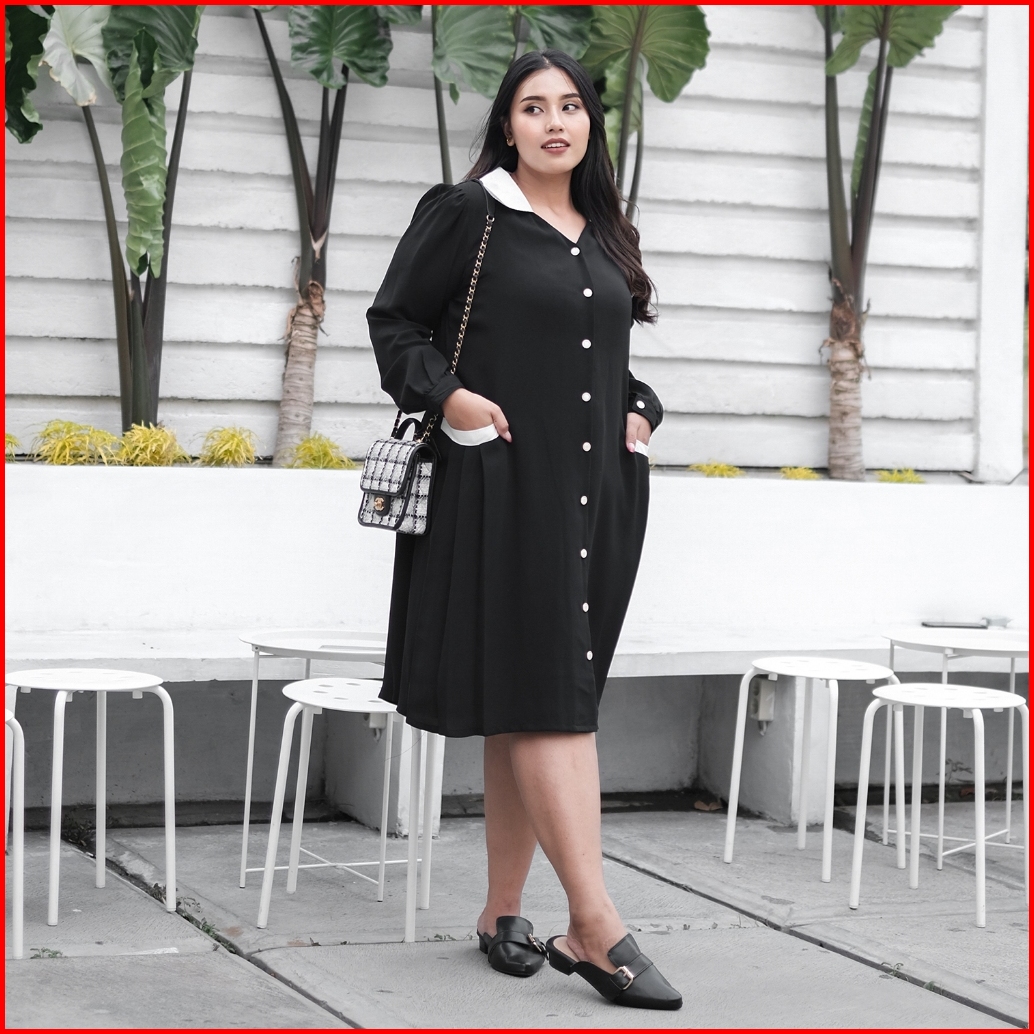 Bigissimo - Adara Tunik Dress Atasan Wanita Tunik Dress Polos Korean Style Big Size Jumbo