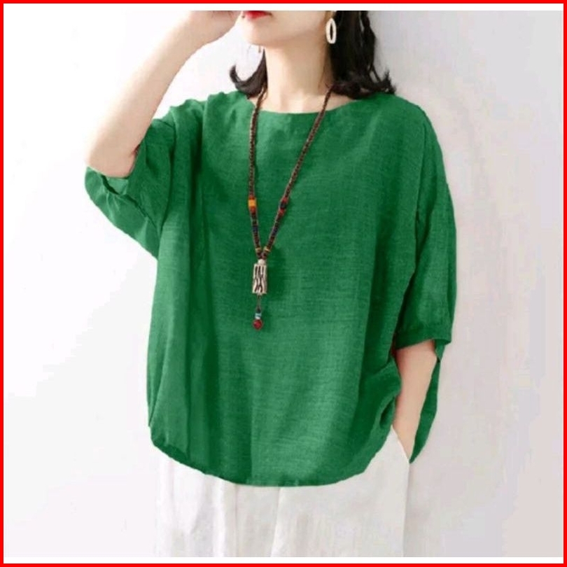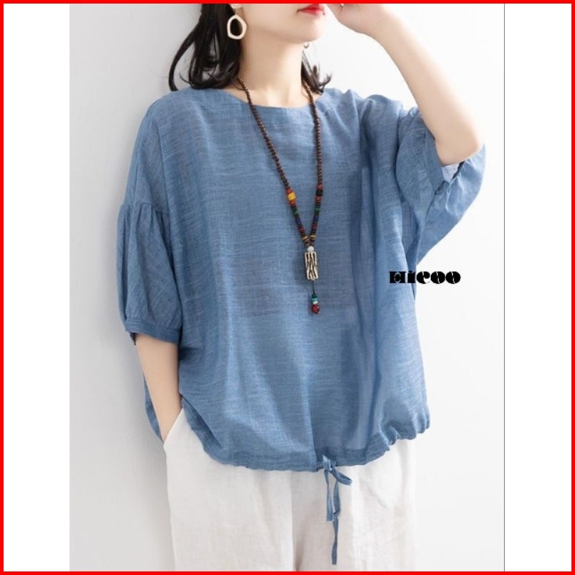 Hicoo Blouse Kemeja Wanita Jumbo Ashley Polo Linen Korean Style