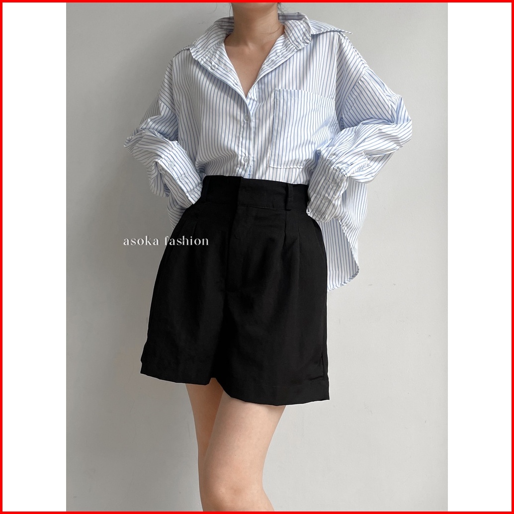 Asoka Theresa Shirt 2156 - Stripe Shirt Kemeja Crop Wanita - Kemeja Katun Salur Garis - Kemeja Oversize