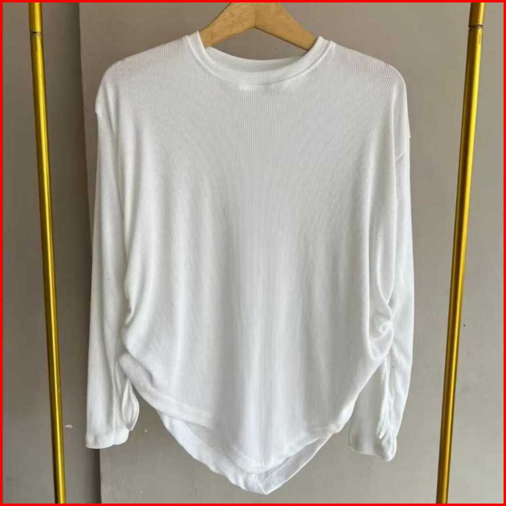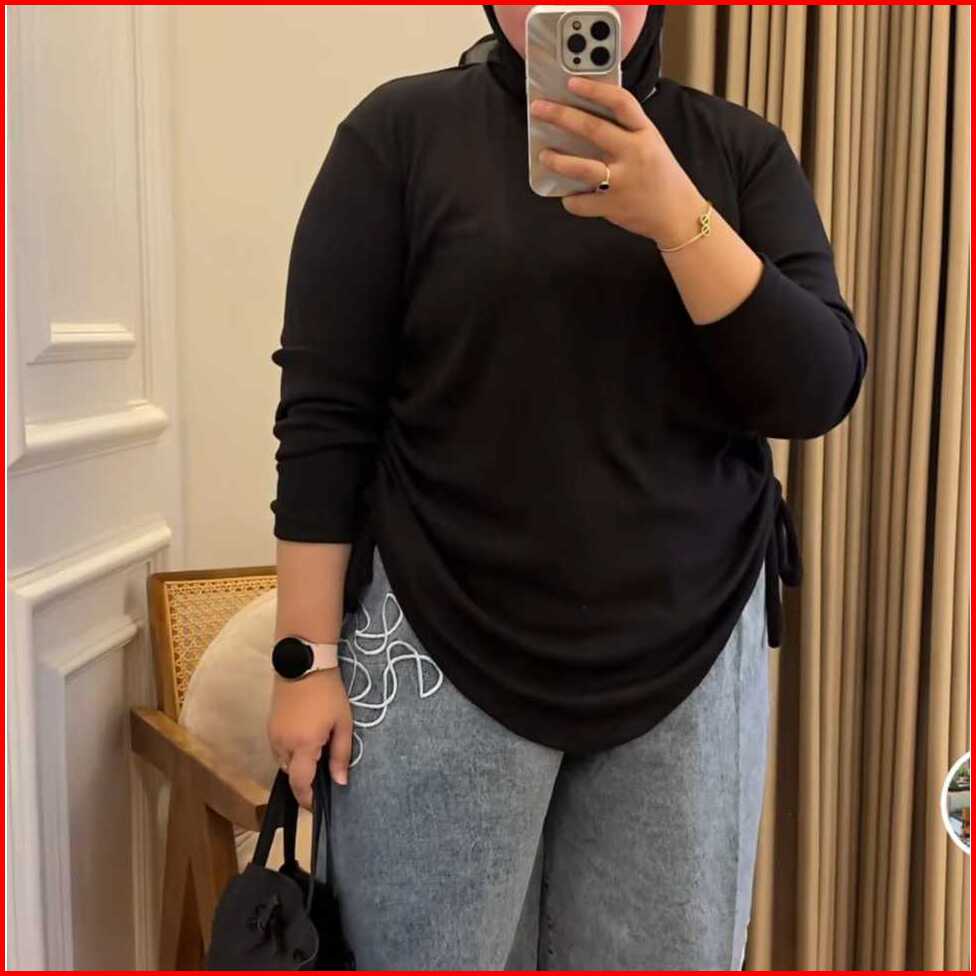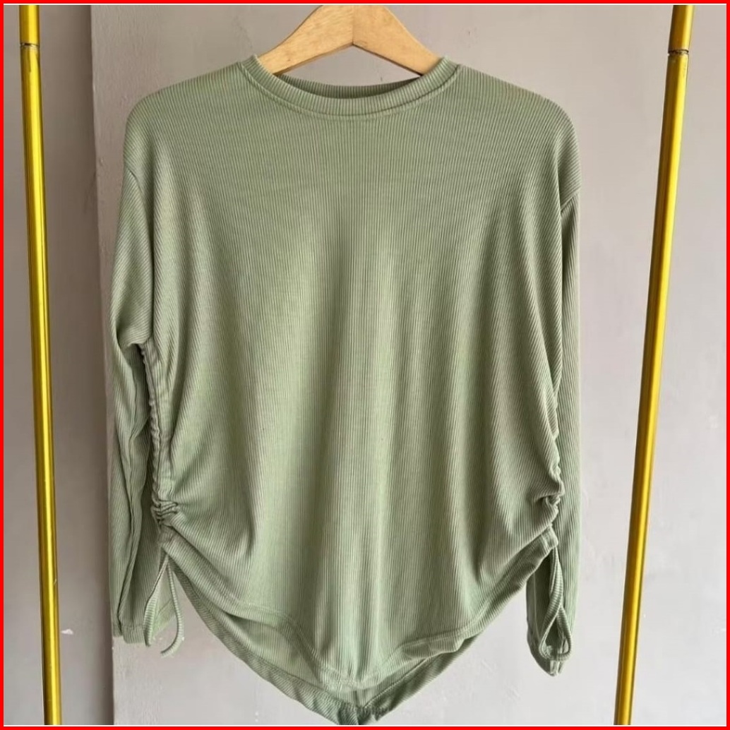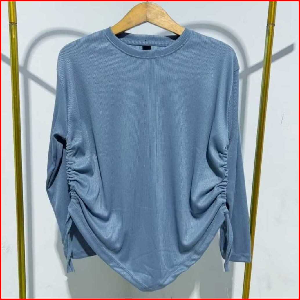 Top Blouse Jumbo Serut Samping Kiri Kanan Atasan Knit Tali Serut Lengan Panjang Model Korea