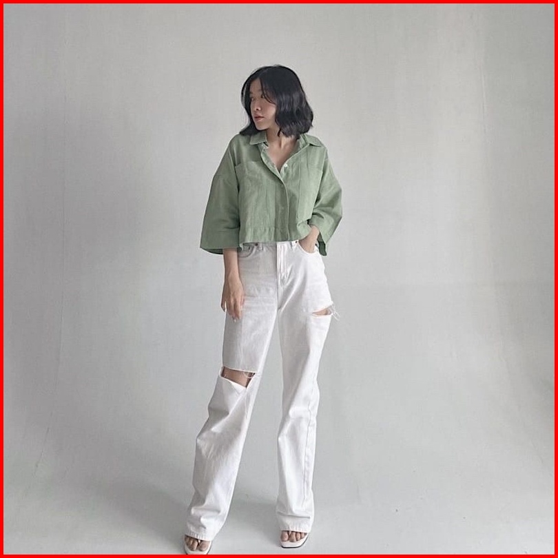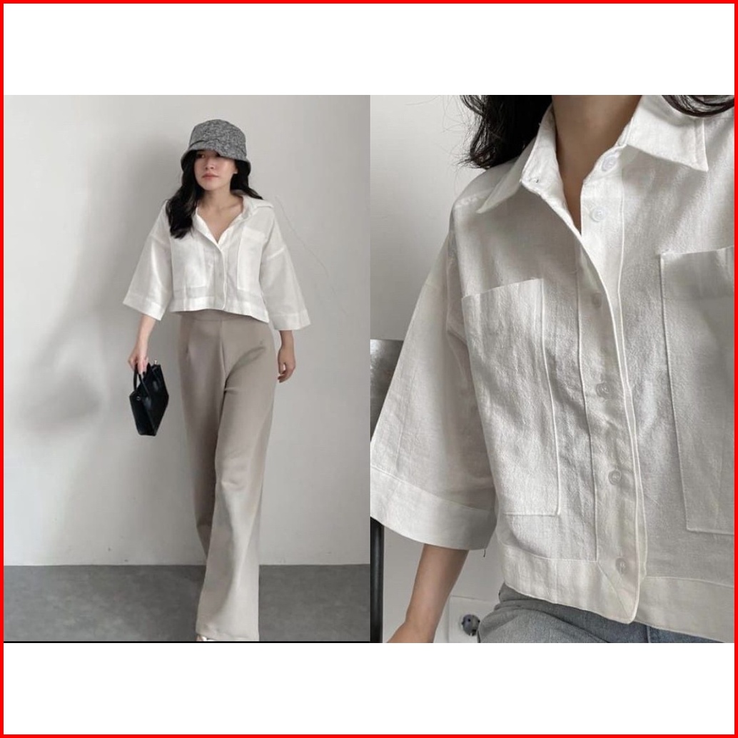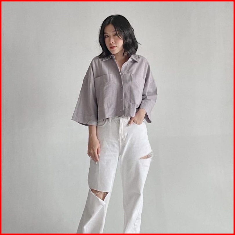 Kemeja Caputri Crop Oversize Linen Daily Outer Busui Rami Linen