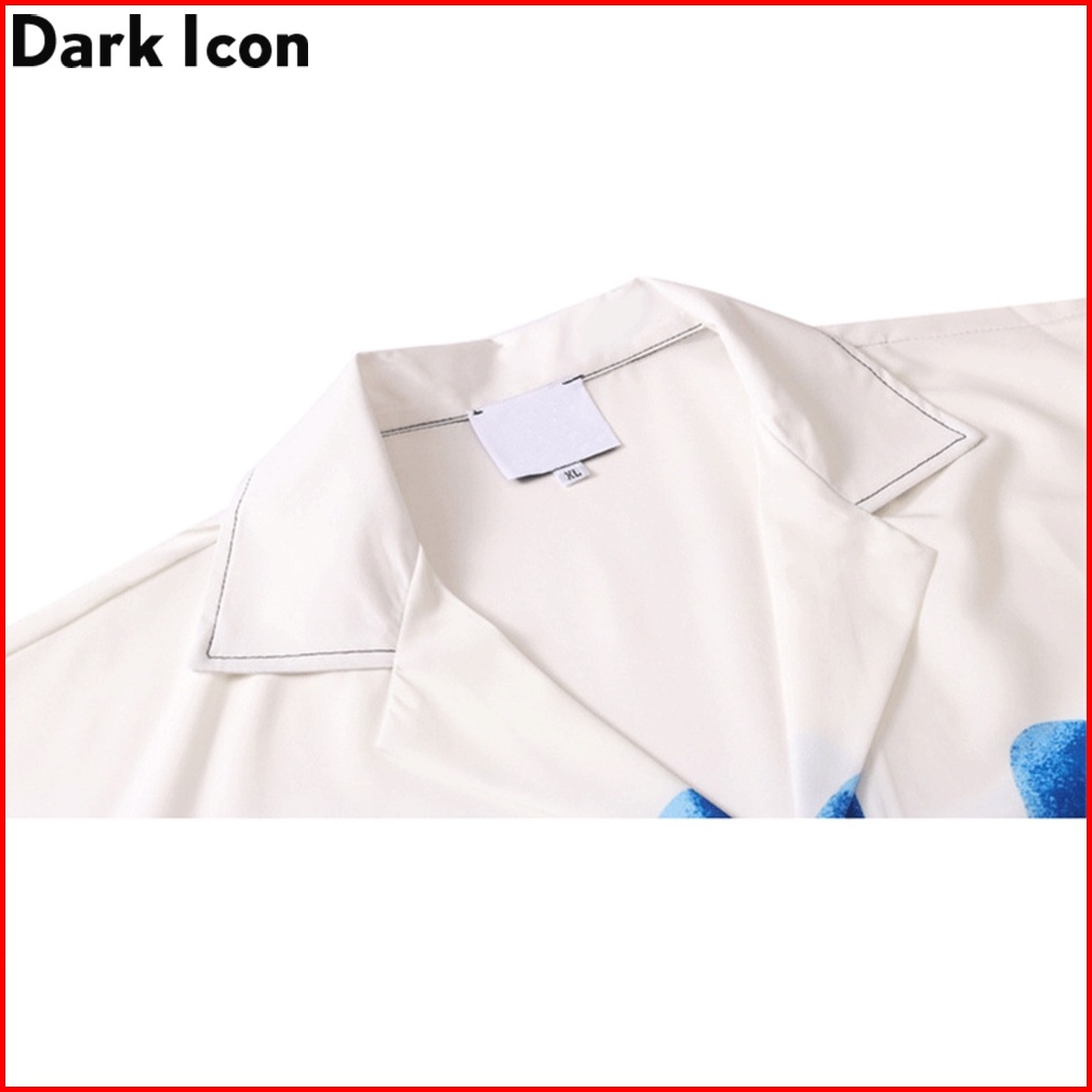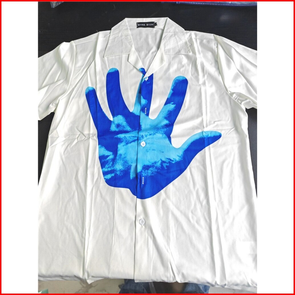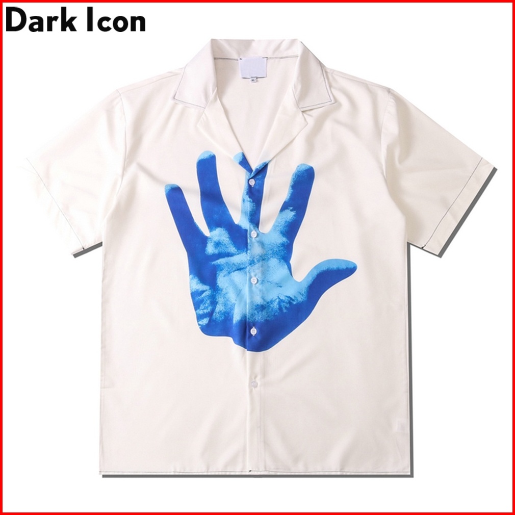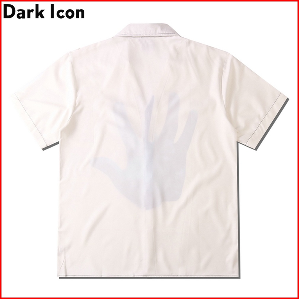 Dark Icon Hand Printing Kemeja Pria Lengan Pendek Motif Vintage Shirts Cowok Baju Gambar Tangab