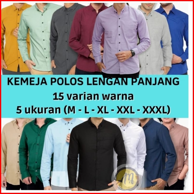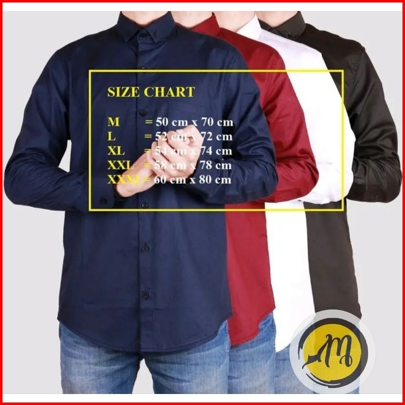 Kemeja Polos Pria Slimfit Lengan Panjang Hem Pria Kantor Hitam Putih Navy Maron Army