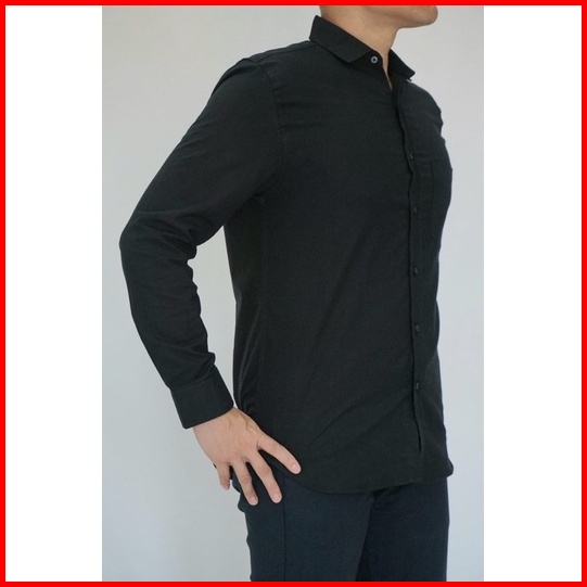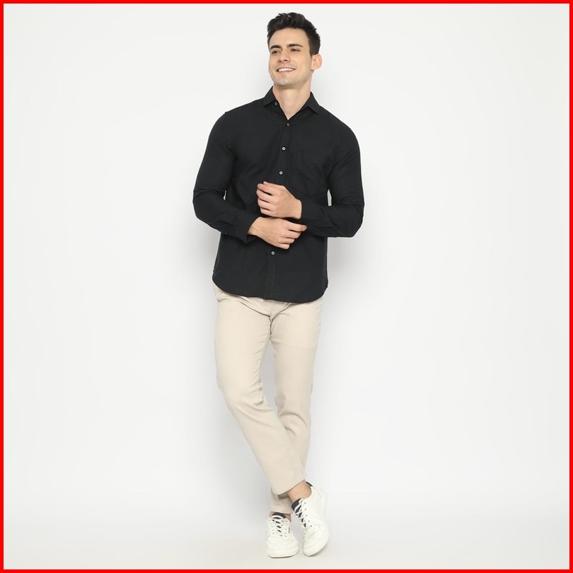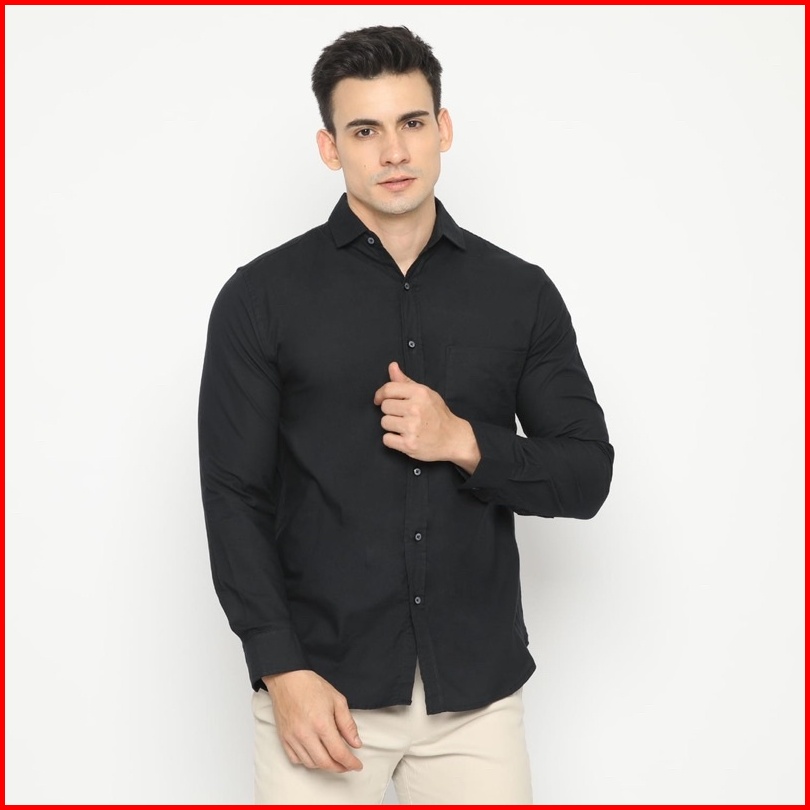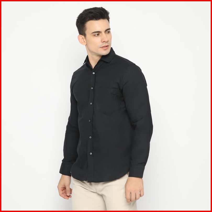 Code Male - Warner Kemeja Pria Panjang Basic Hitam Slimfit