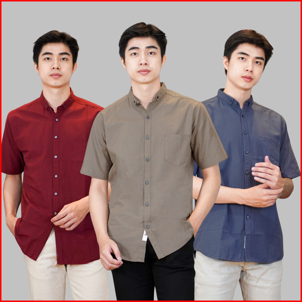 Swipe Up Kemeja Pria Basic Polos Slimfit Lengan Pendek Katun Cigaret