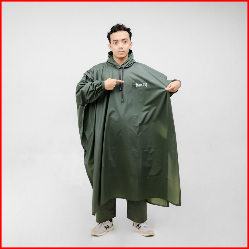 Miles Jas Hujan Ponco Kelelawar Setelan Celana Laki-laki Perempuan Bahan Tebal Kuat Elastis