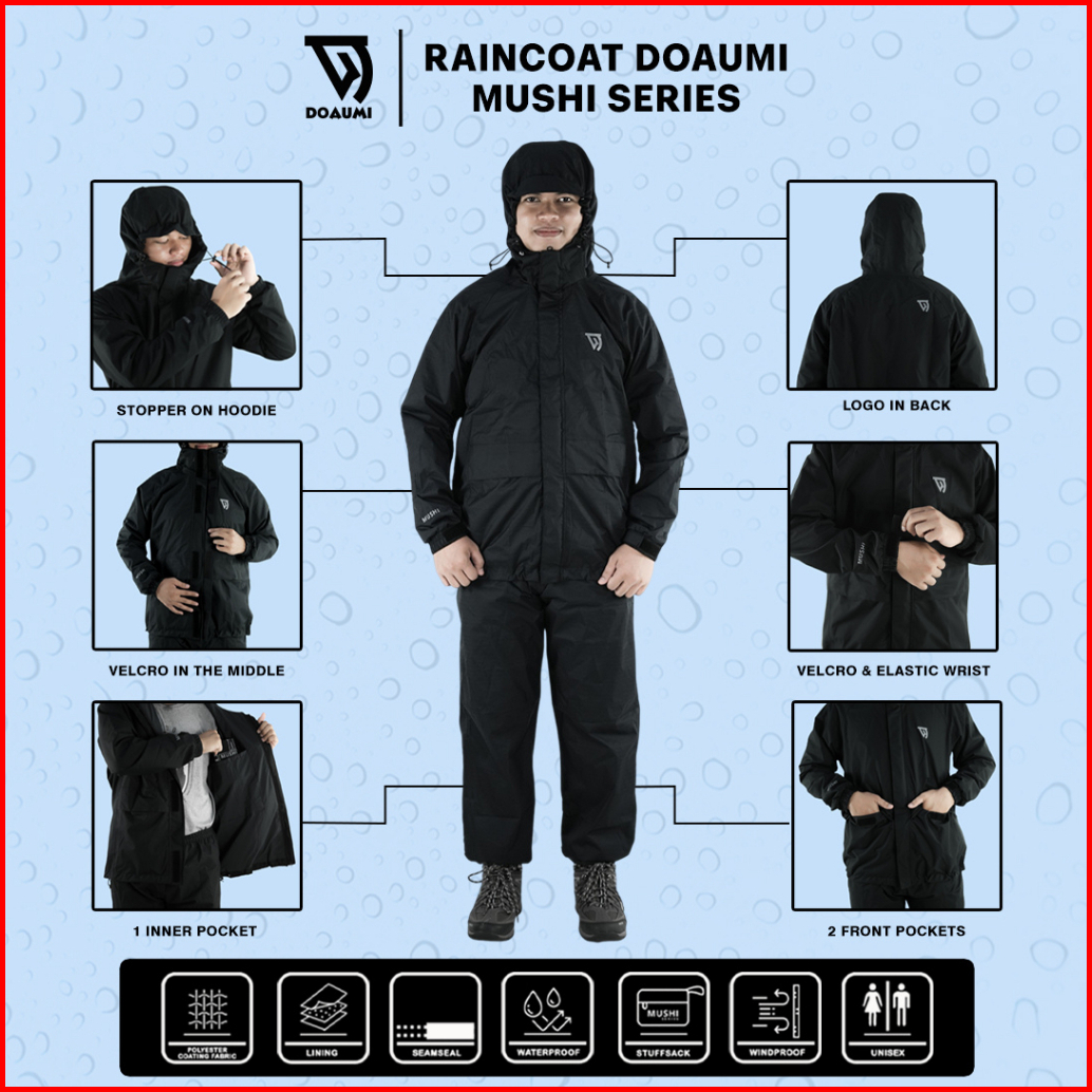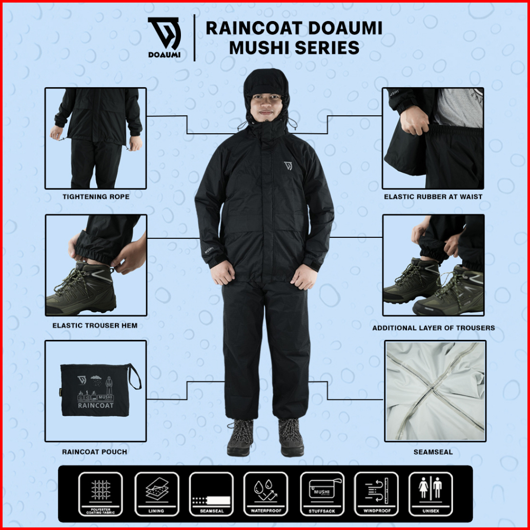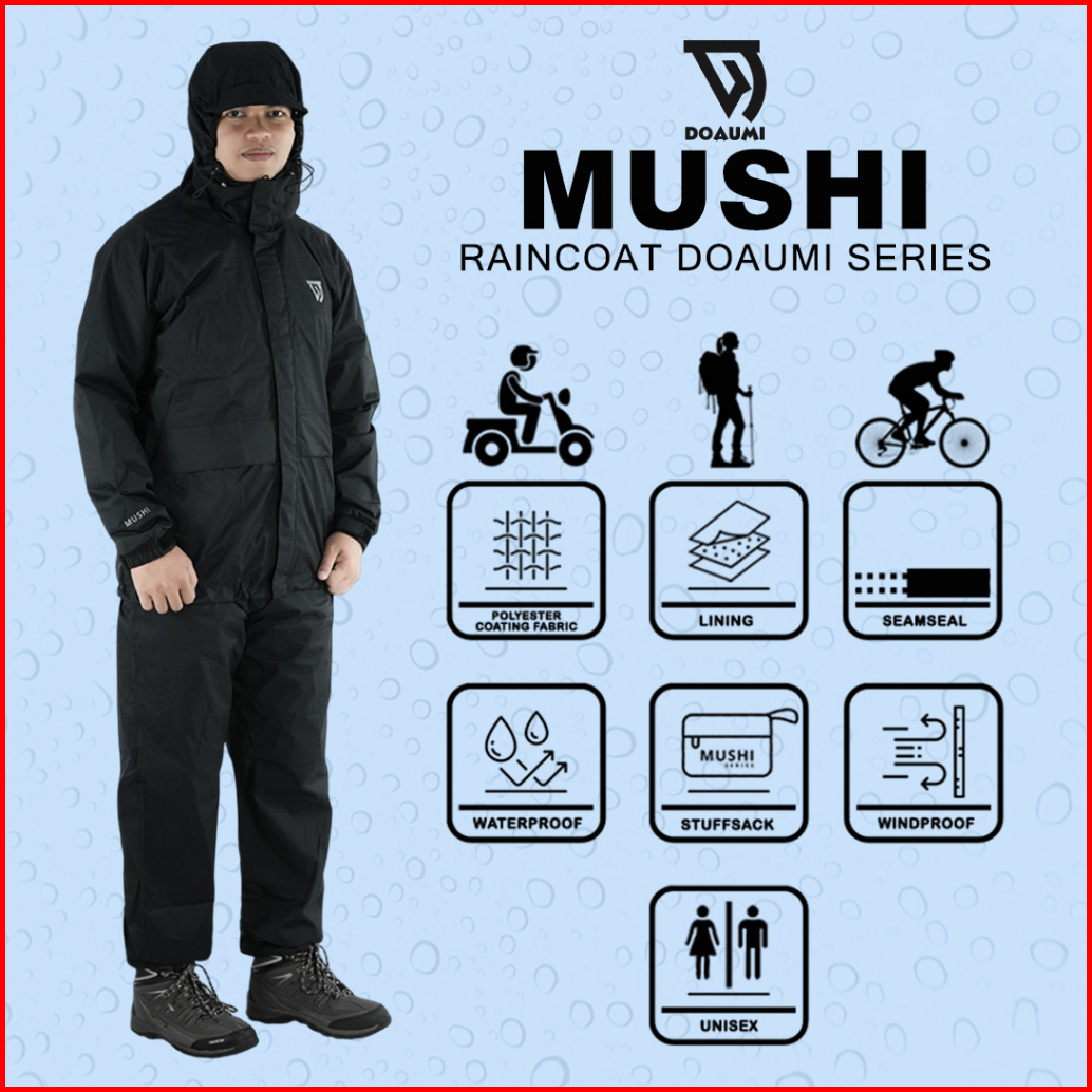 Raincoat Doaumi Mushi Pria Wanita Dewasa Jas Hujan Motor Setelan Jaket Anti Rembes Rain Coat Outdoor Gunung Pendaki Ponc
