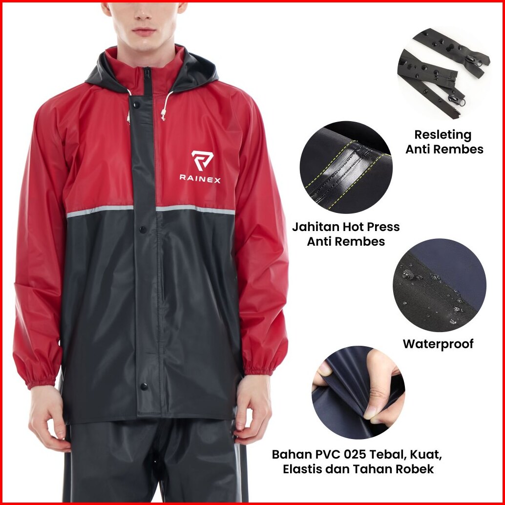 Jas Hujan Mantel Pria Wanita Set Hoodie Premium Quality By Rainex Raincoat Sealpress Anti Rembes