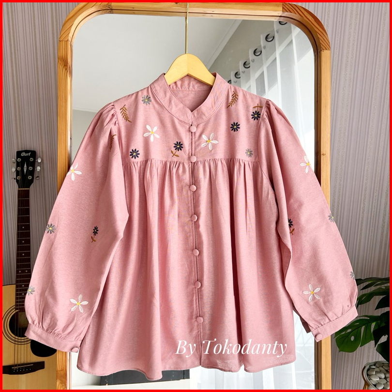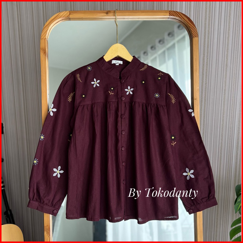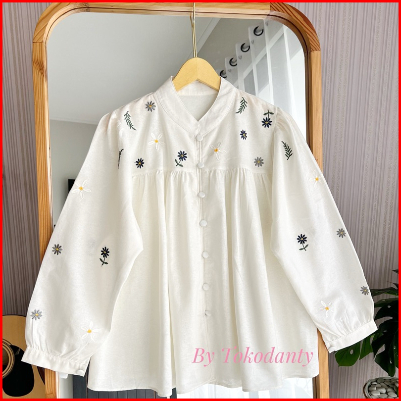 Sabine Shirt - Kemeja Wanita Bordir Cantik - Linen Premium - Lengan Panjang - Ukuran Jumbo