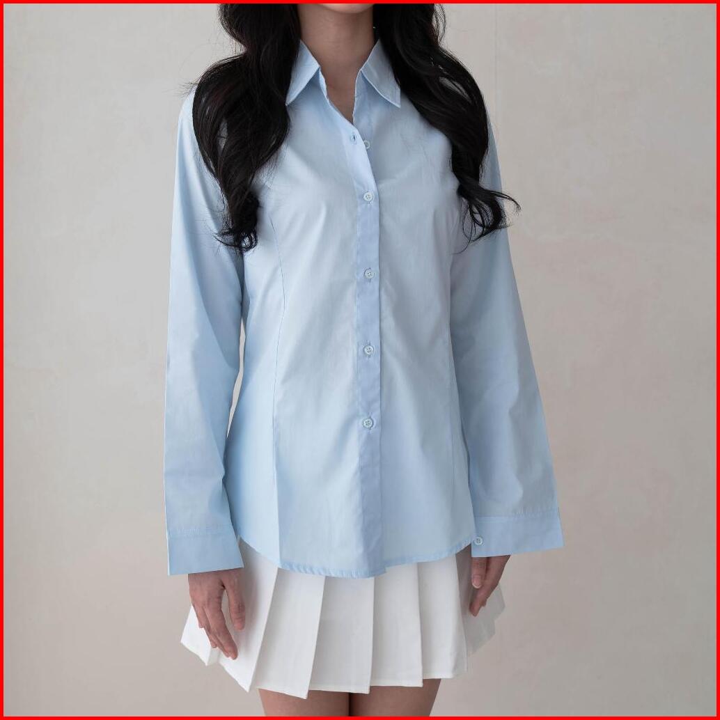 Junelle - Heather Shirt Slim Fit Shirt Kemeja Slim Wanita Kemeja Kantor Wanita Kemeja Lengan Panjang Kemeja Putih Hitam