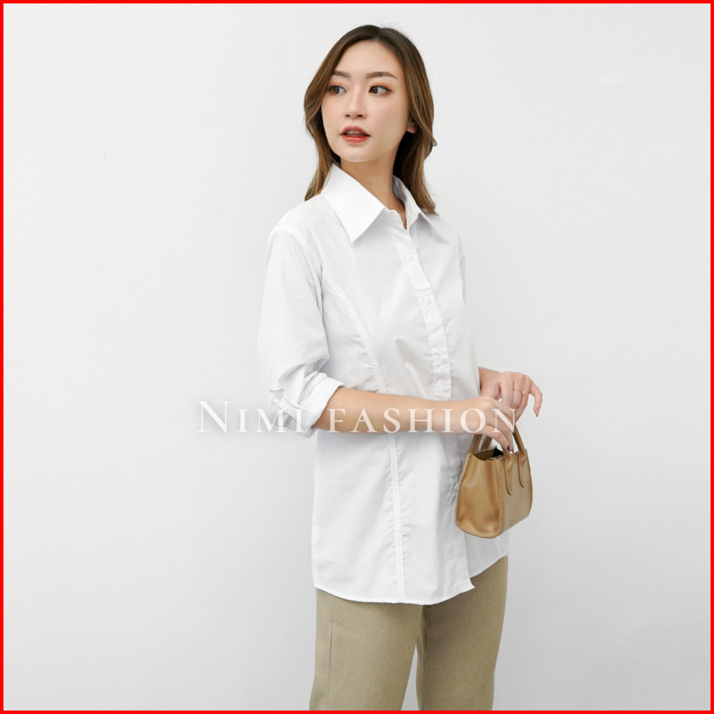 Kemeja Putih Rempel List Wanita Baju Kemeja Putih Kerja Lenggan Panjang Formal Kantor Wanita