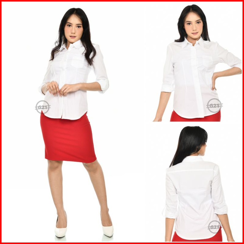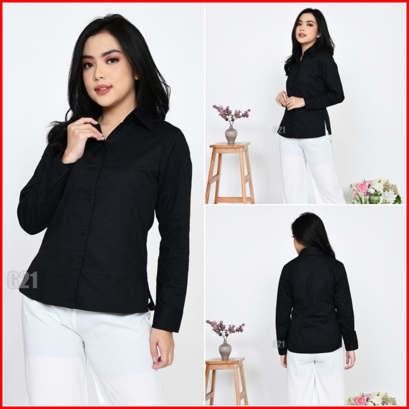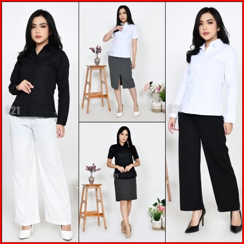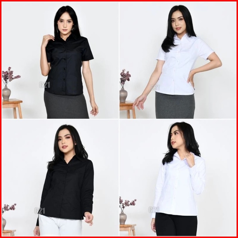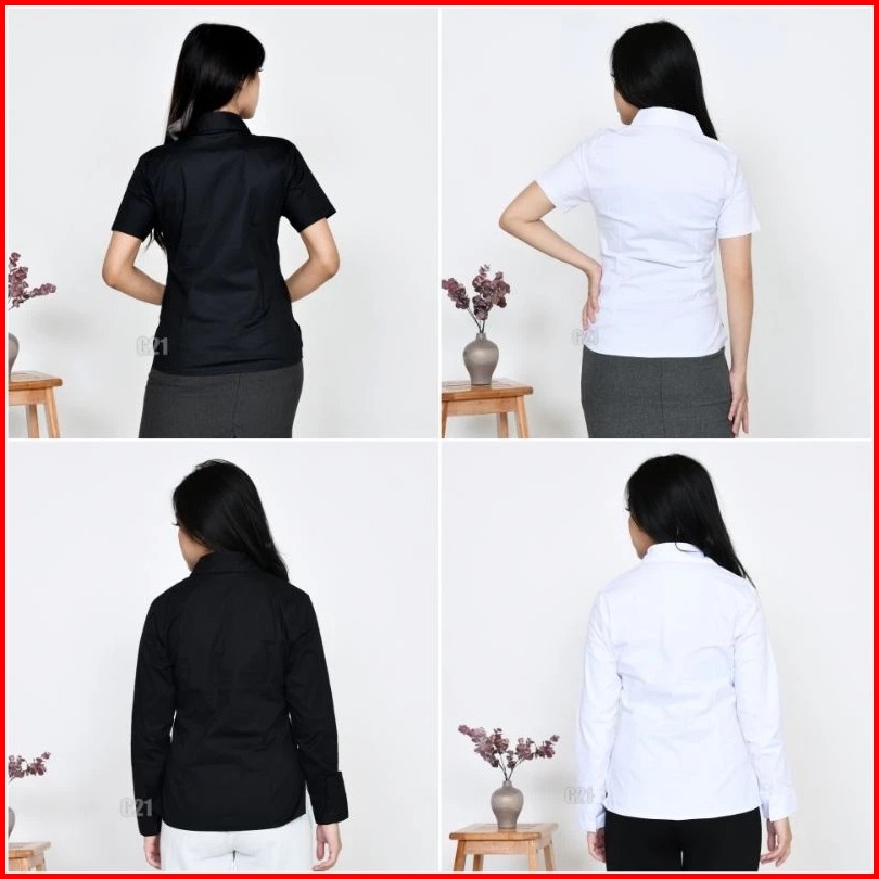 Kemeja Putih Hitam Wanita Kerja Kantor Formal Lengan Panjang Dan Pendek