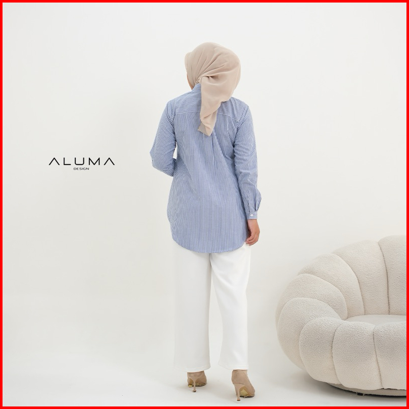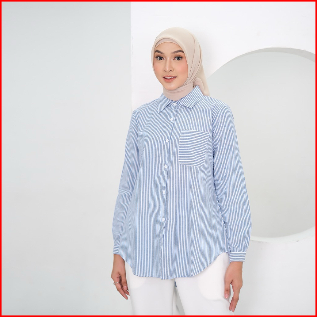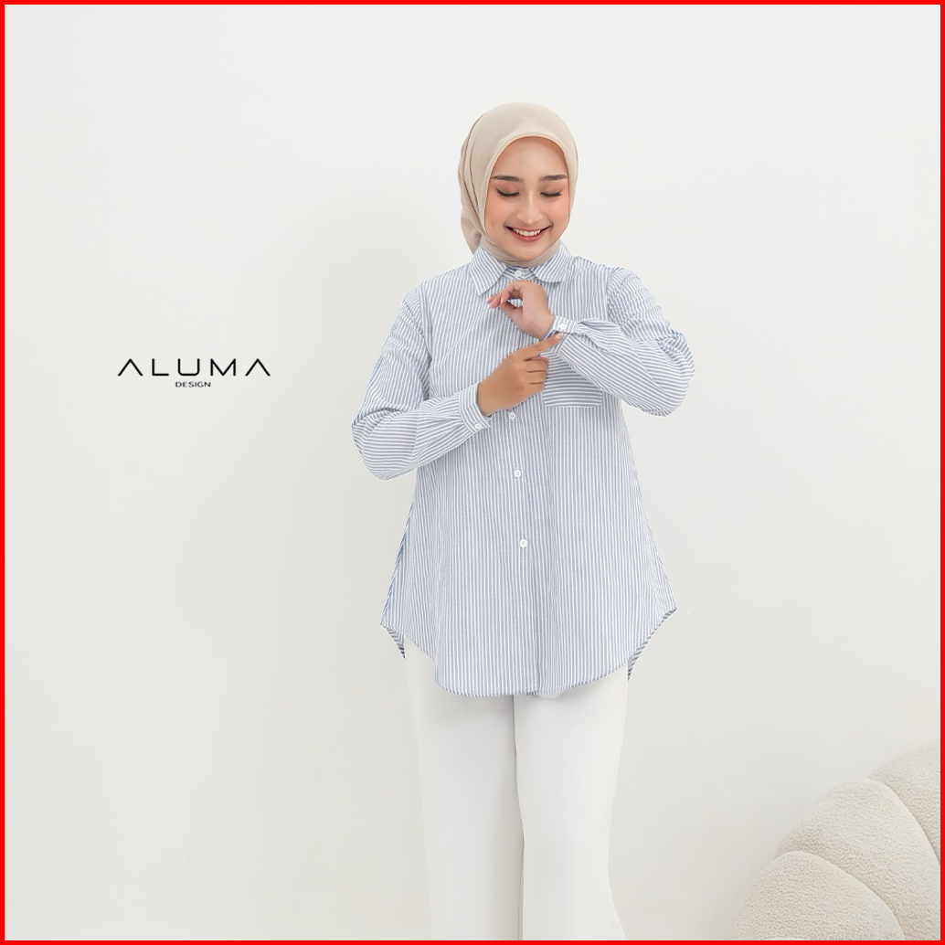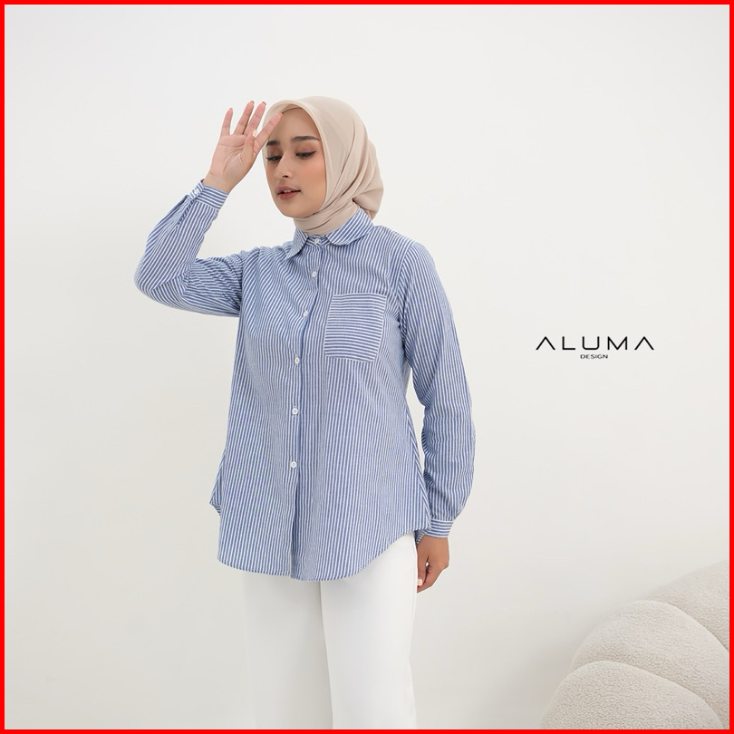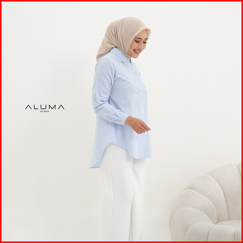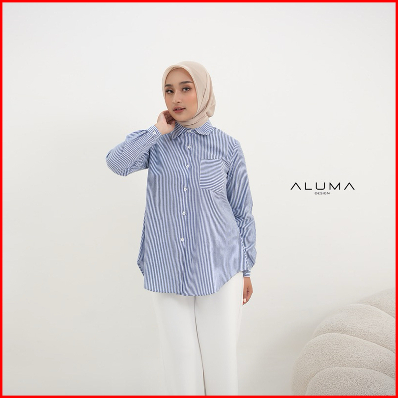 Aluma Kemeja Stripe Wanita Katun Oxford
