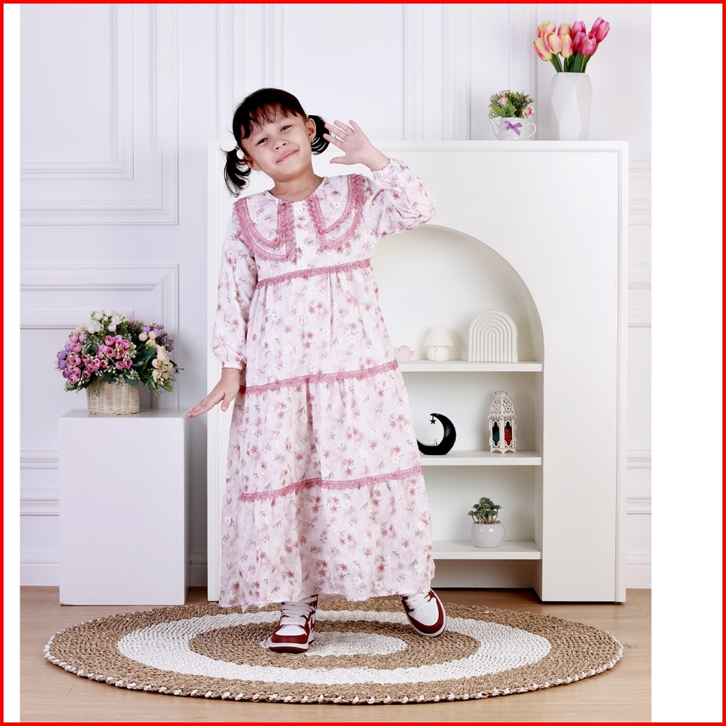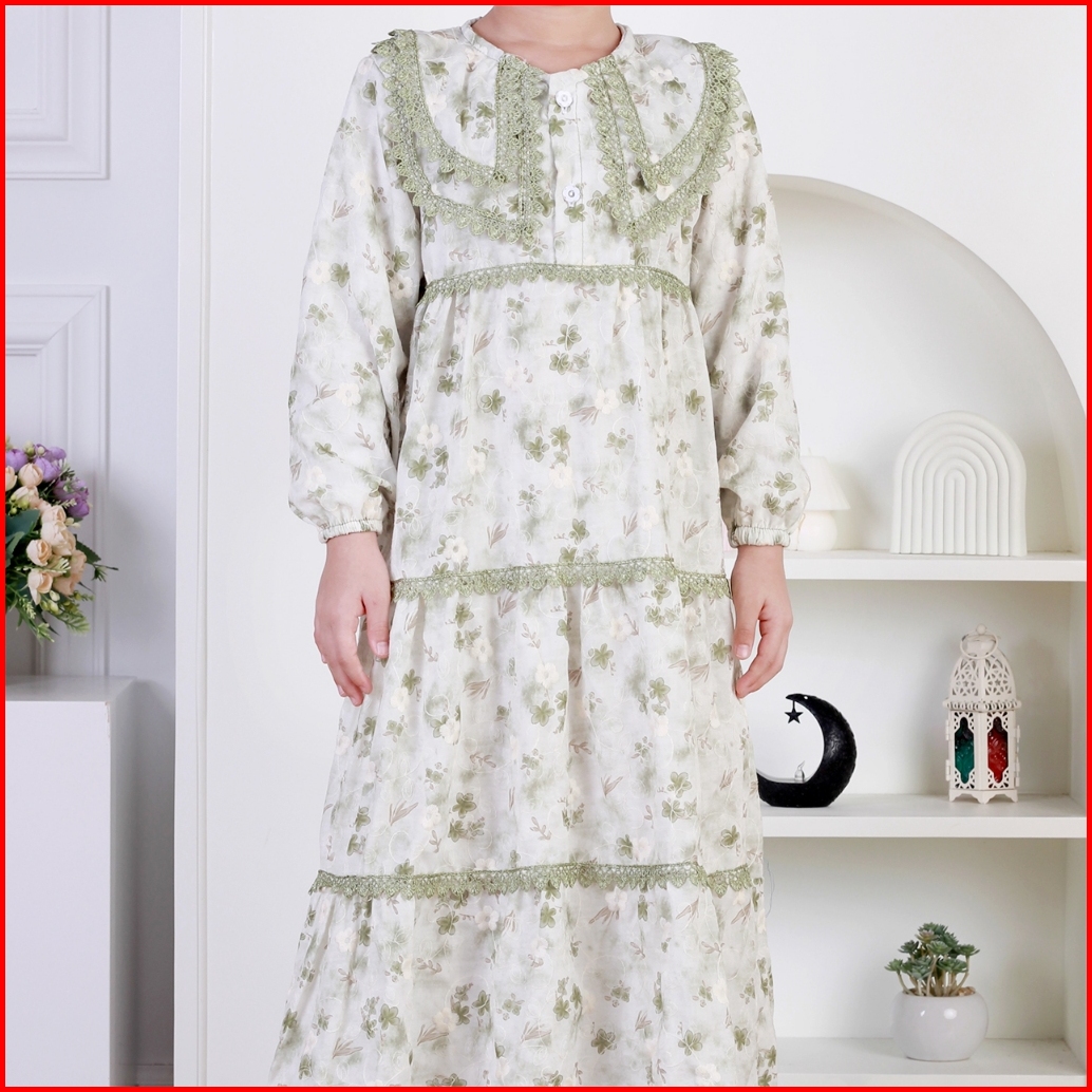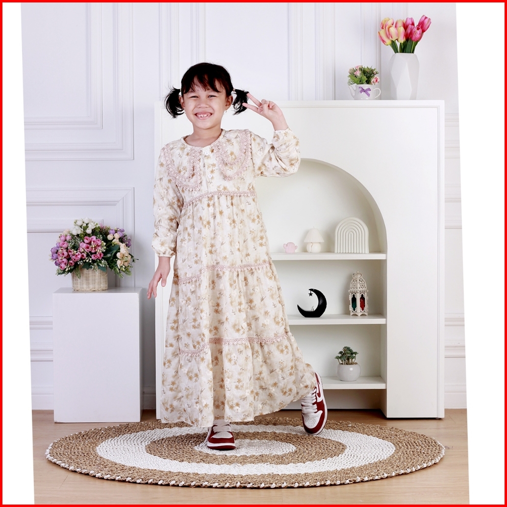 Dungdungkids Gamis Anak Ristya Katun Bordir Renda 3 - 14 Tahun