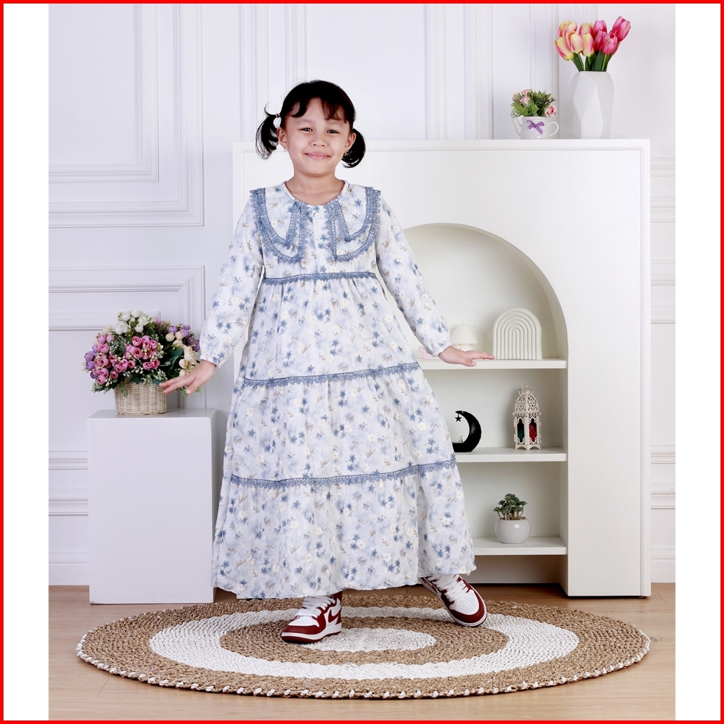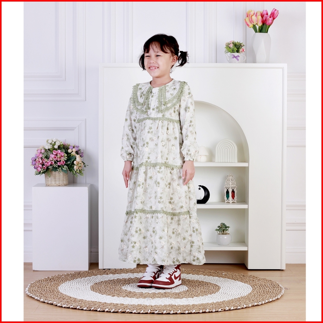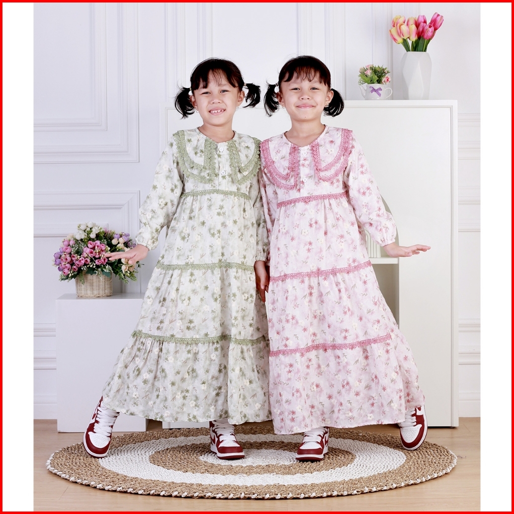Dungdungkids Gamis Anak Ristya Katun Bordir Renda 3 - 14 Tahun
