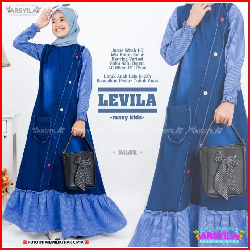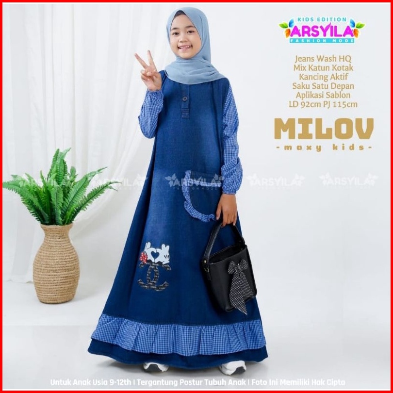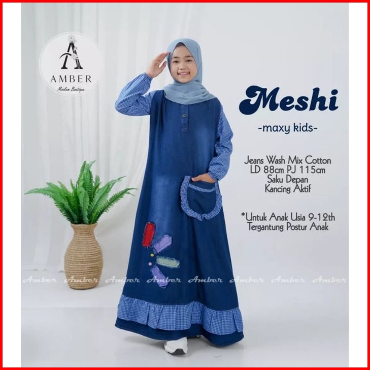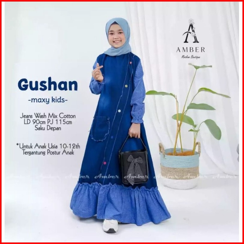 Gushan Maxi Dress Baju Gamis Jeans Anak Perempuan Remaja Taggung Umur 10 - 12 Tahun Mix Katun Kotak-kotak Murah Meriah K