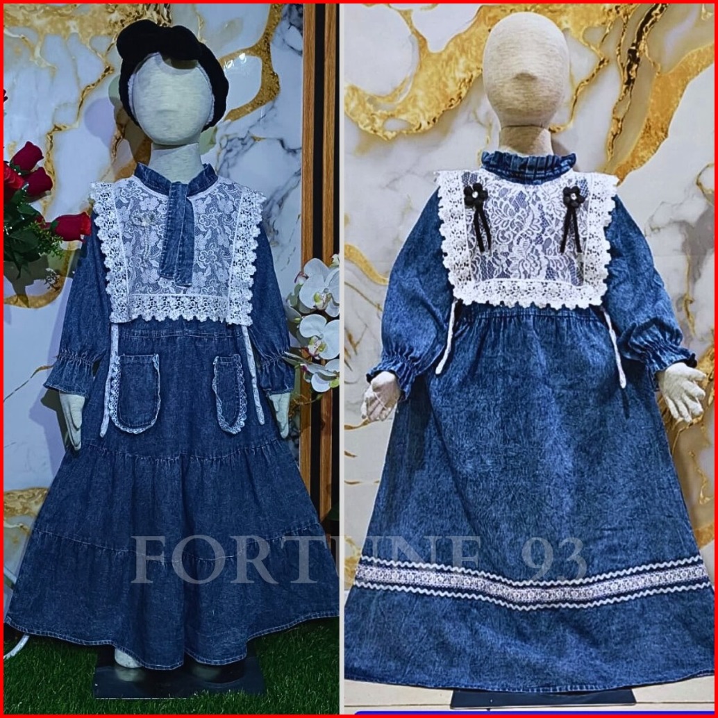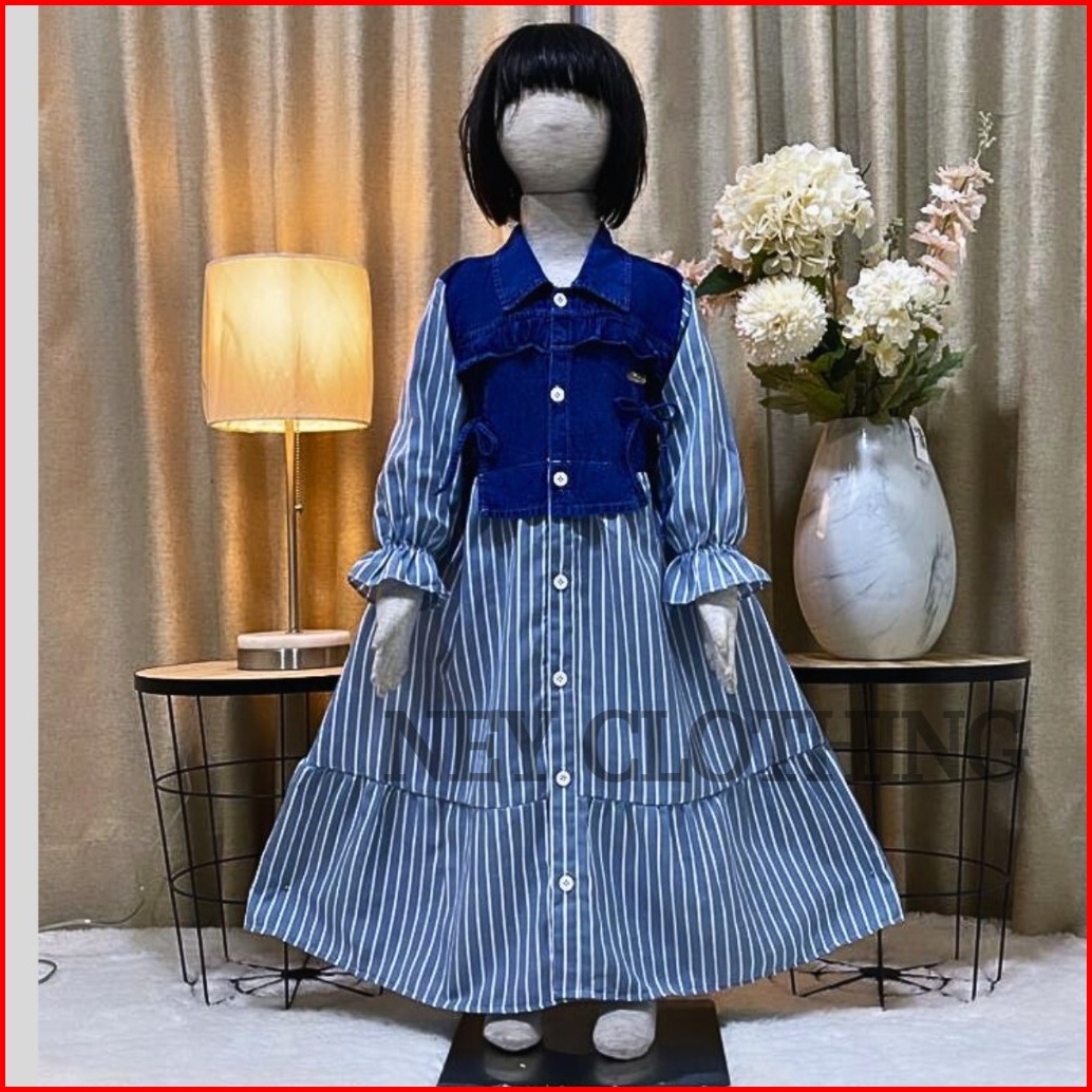 Gamis Denim Anak Amanda Rompi Jeans Import Usia 1 - 10 Tahun Gamis Muslim Rempel Anak Import Kekinian Korean Style Dress