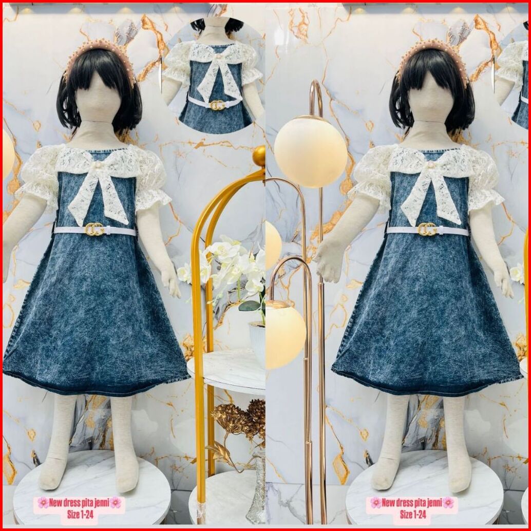 Free Bando Karakter Dress Pita Jemi Anak Perempuan Jeans Mix Brukat Usia 3 - 10 Tahun Terlaris 2025 Gaun Anak Perempuan