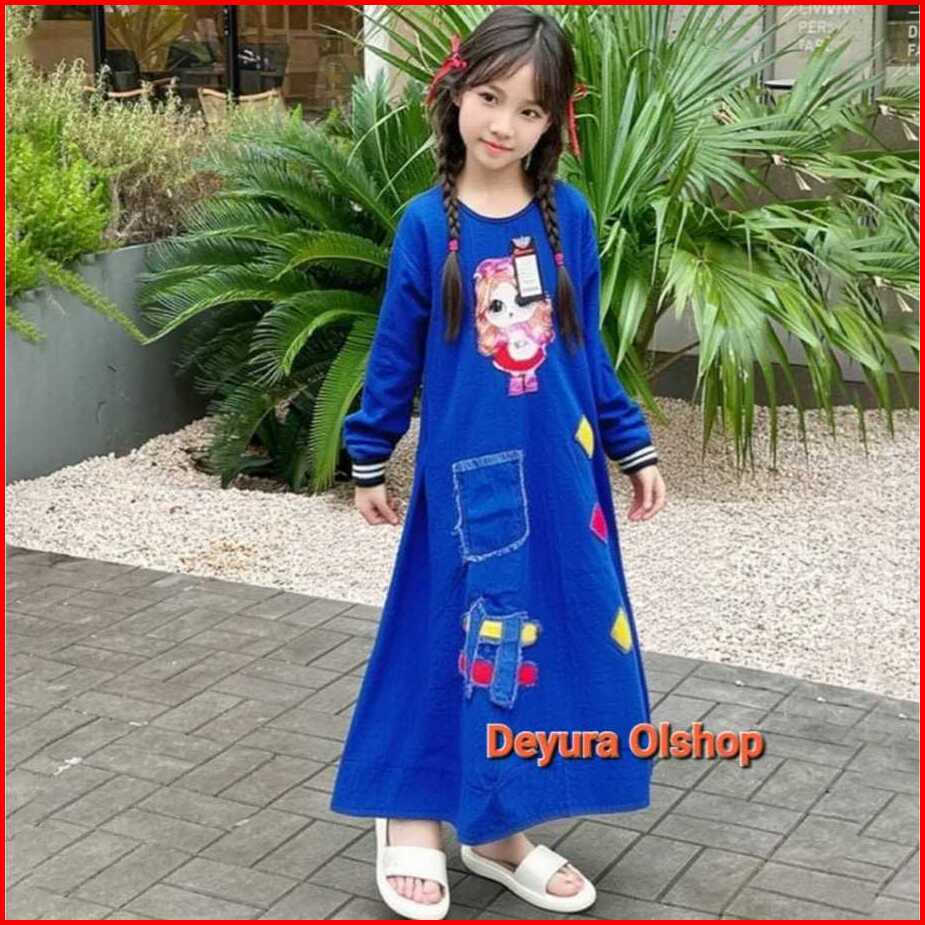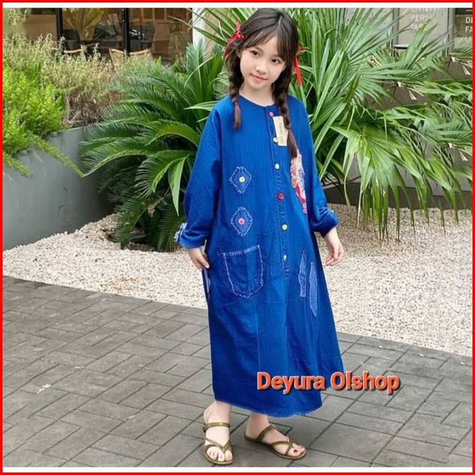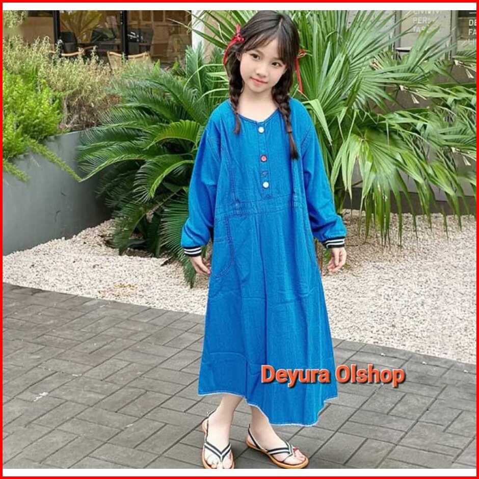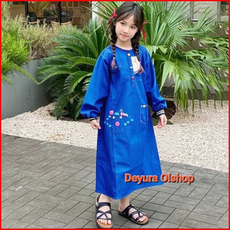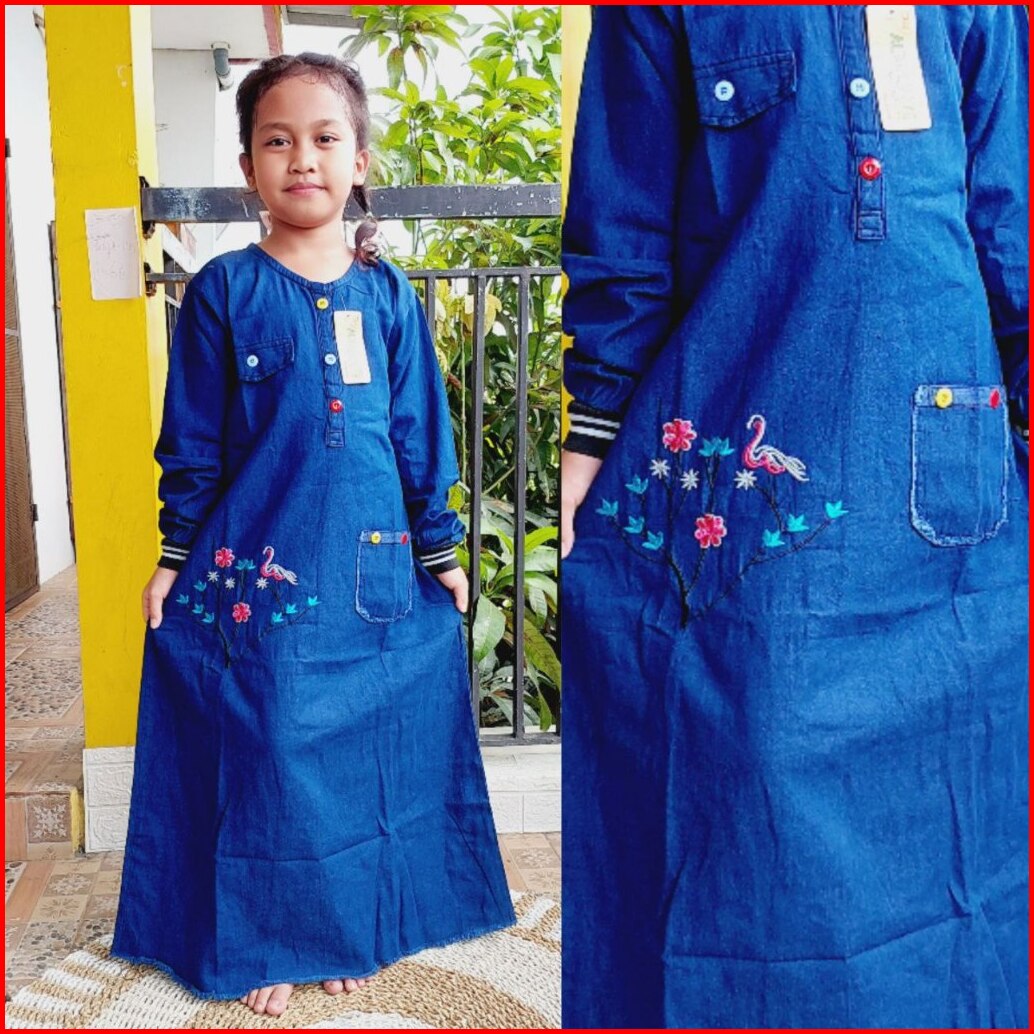 Gamis Jeans Anak Motif Bordir Umur 5-12thn