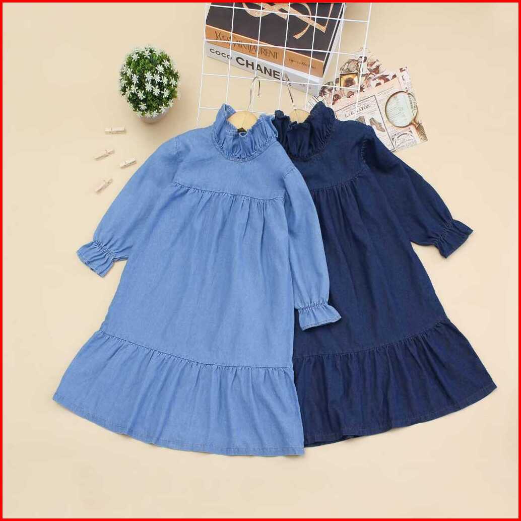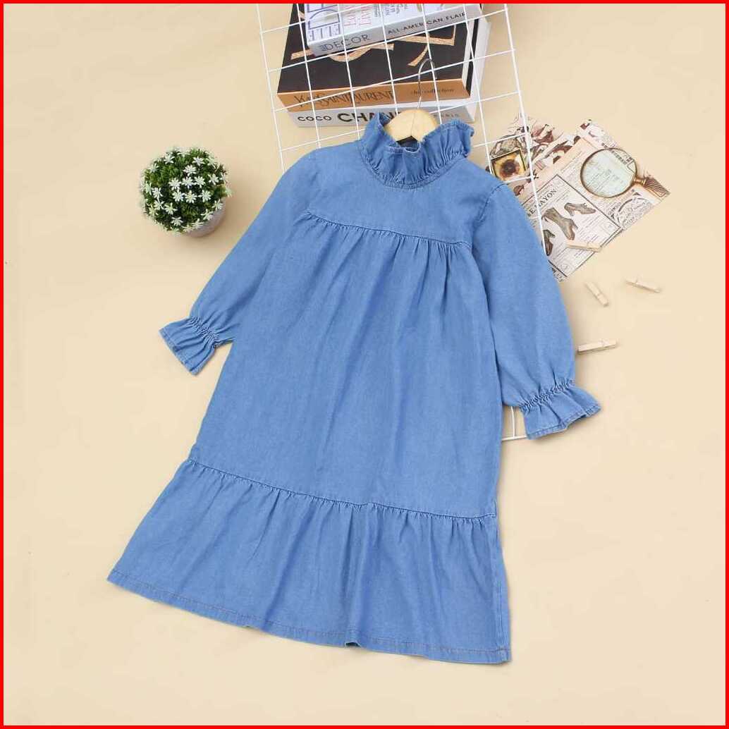 Gamis Ruffle - Gamis Jeans Anak 3-10 Tahun Pakaian Anak Muslim
