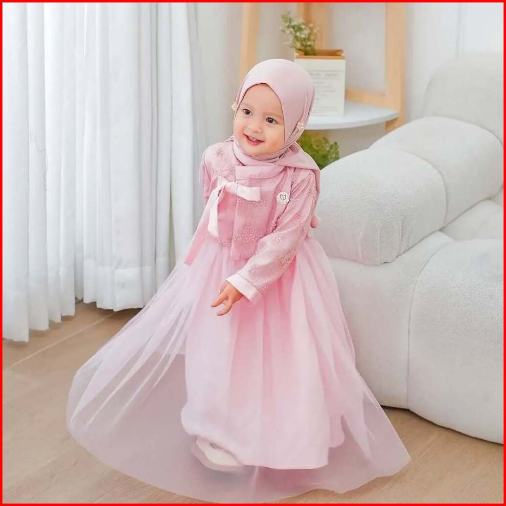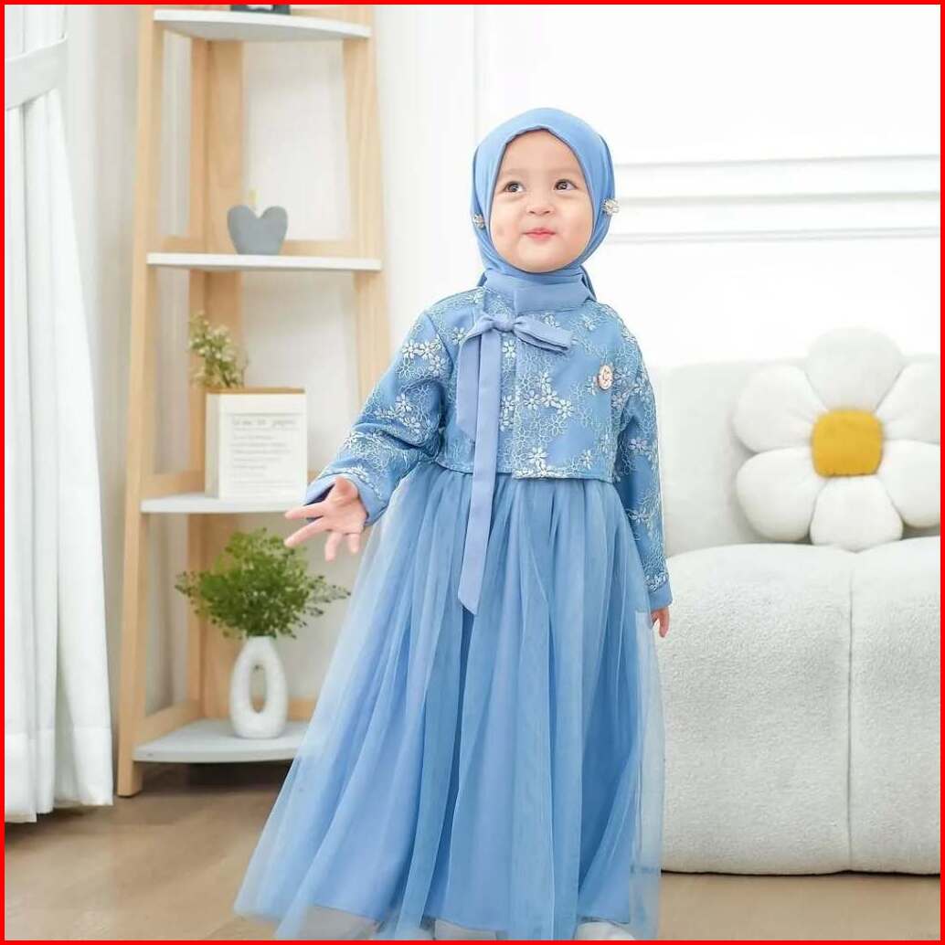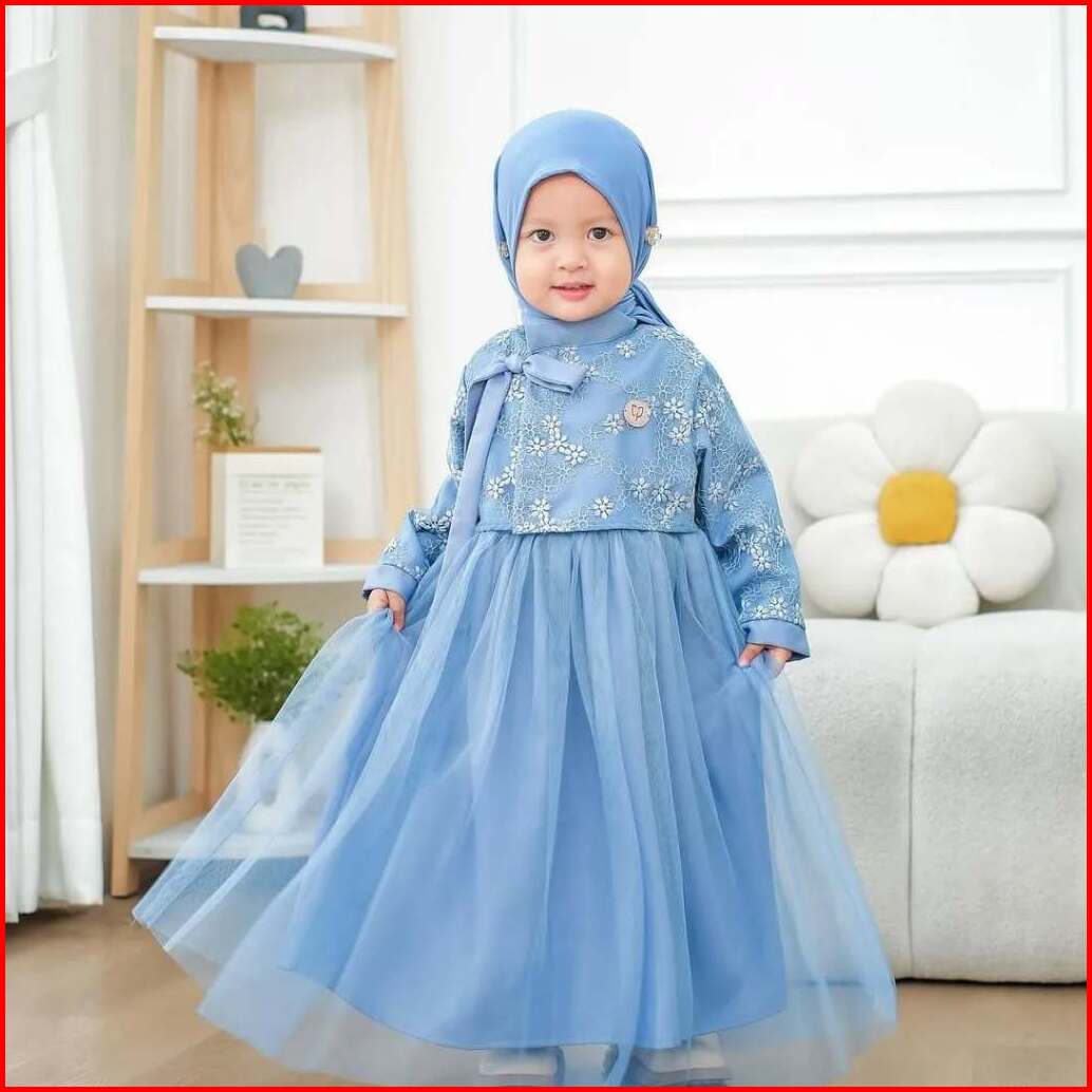 Mafaza Dress Kids Motif Bunga Gamis Anak Denim Umur 2 - 7 Tahun Bahan Satin Velvet Mix Tile Mewah Elegan Gaun Pesta Kond