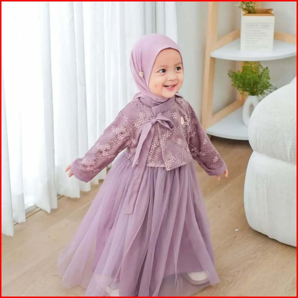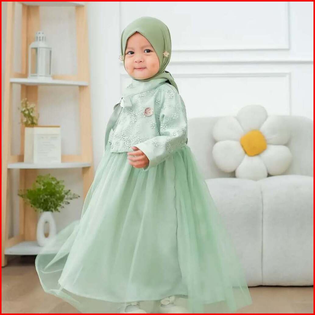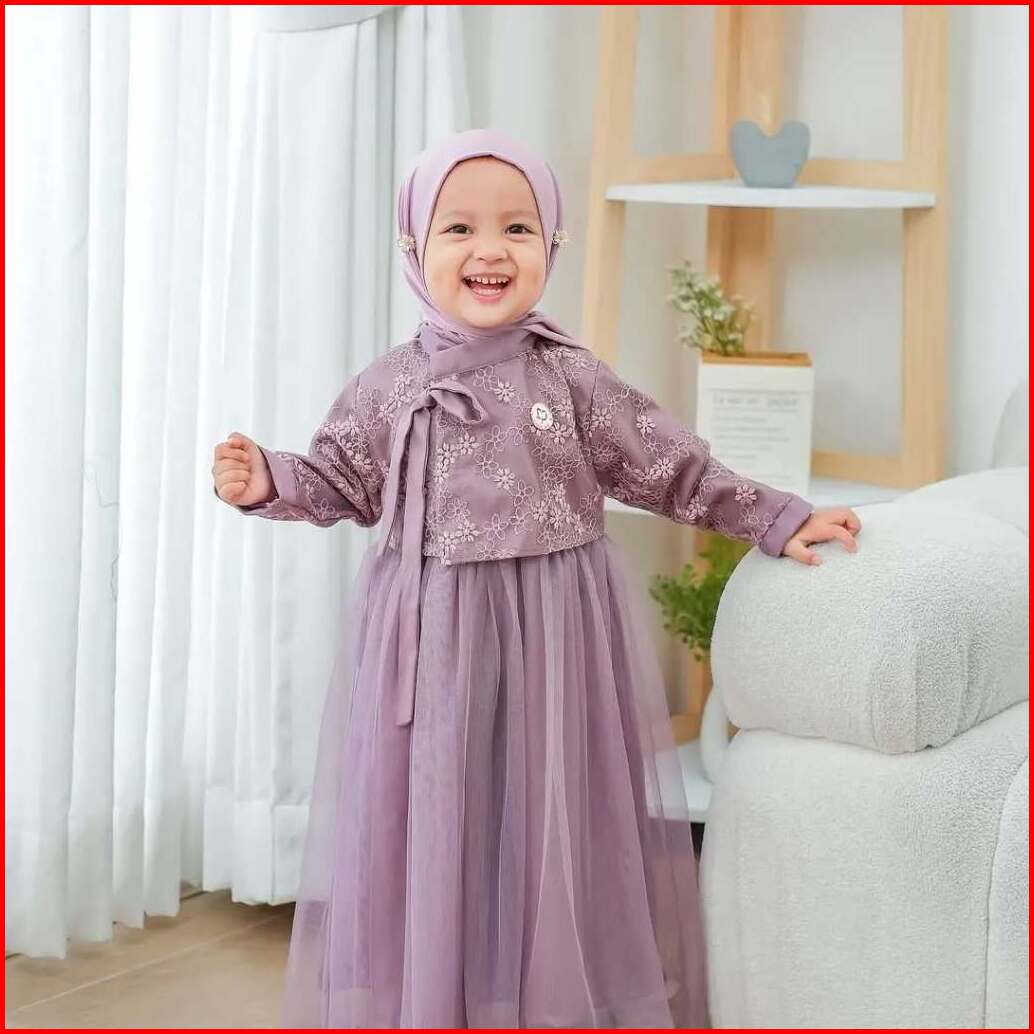 Mafaza Dress Kids Motif Bunga Gamis Anak Denim Umur 2 - 7 Tahun Bahan Satin Velvet Mix Tile Mewah Elegan Gaun Pesta Kond