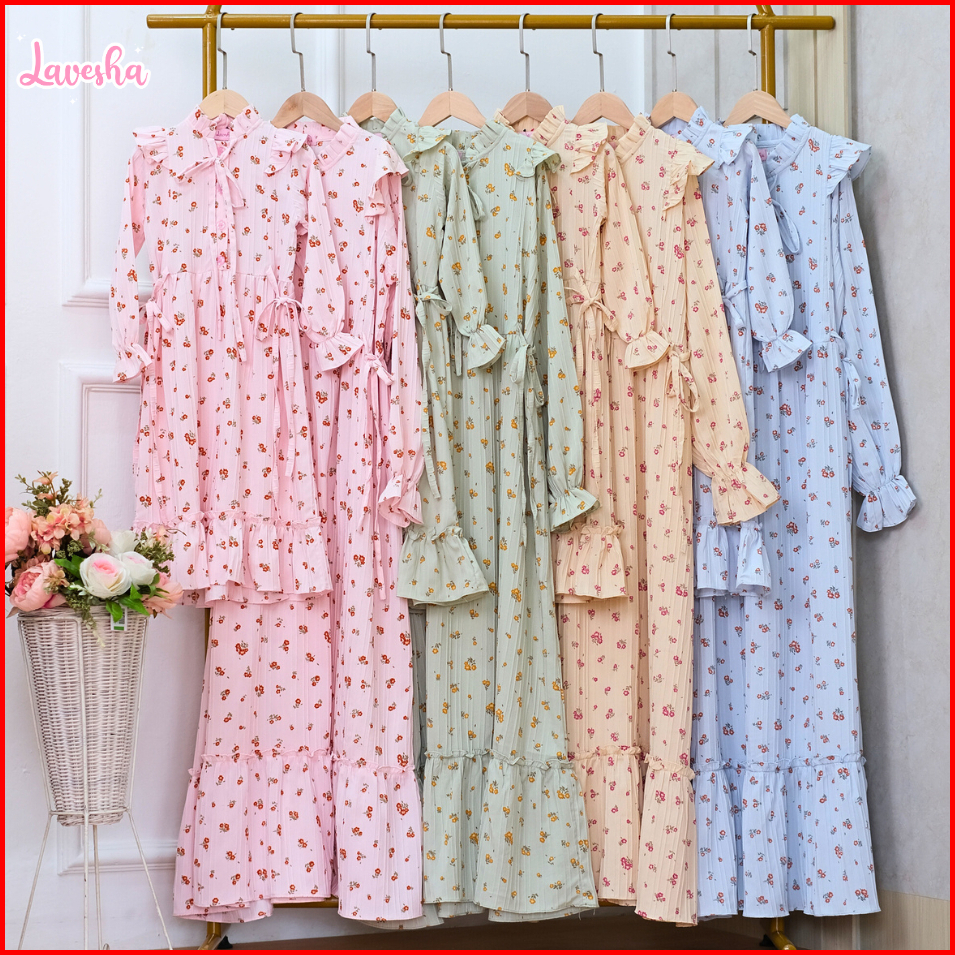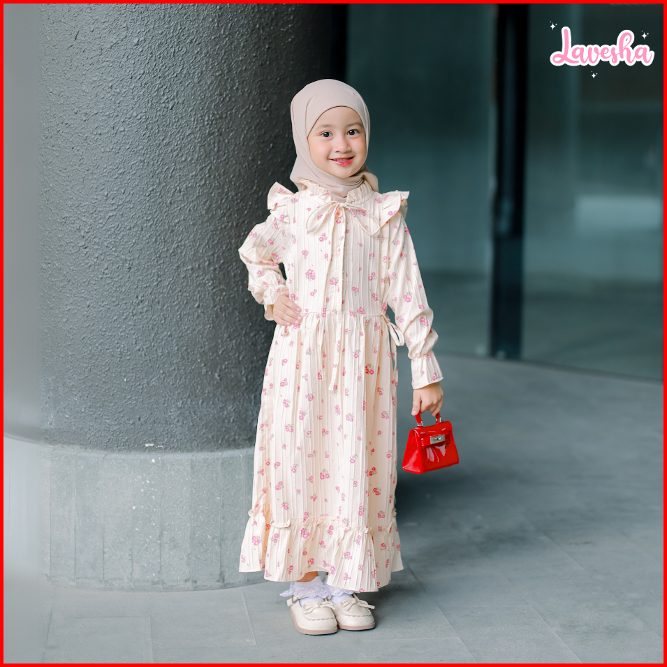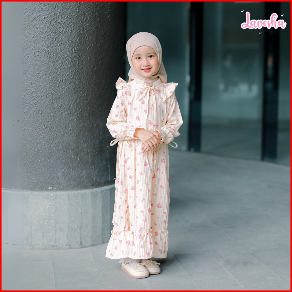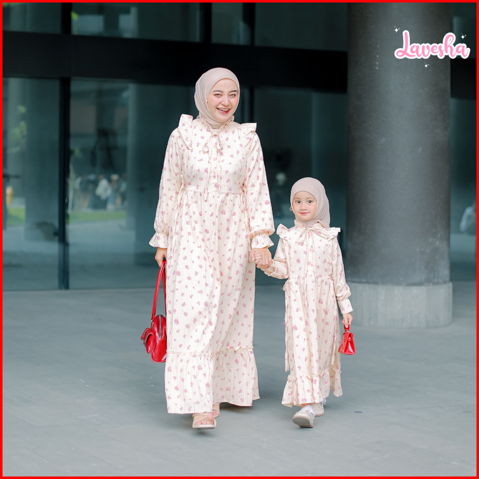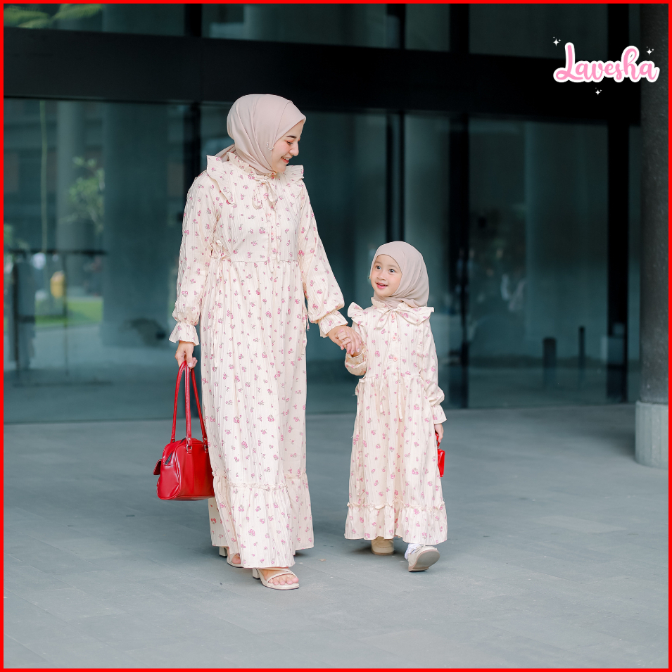 Lavesha Kids - Kamila Dress Couple Gamis Mom Kids Crinkle Elora Premium Motif Bunga Cantik