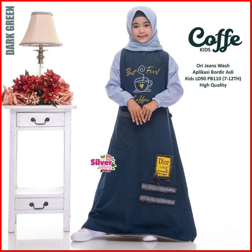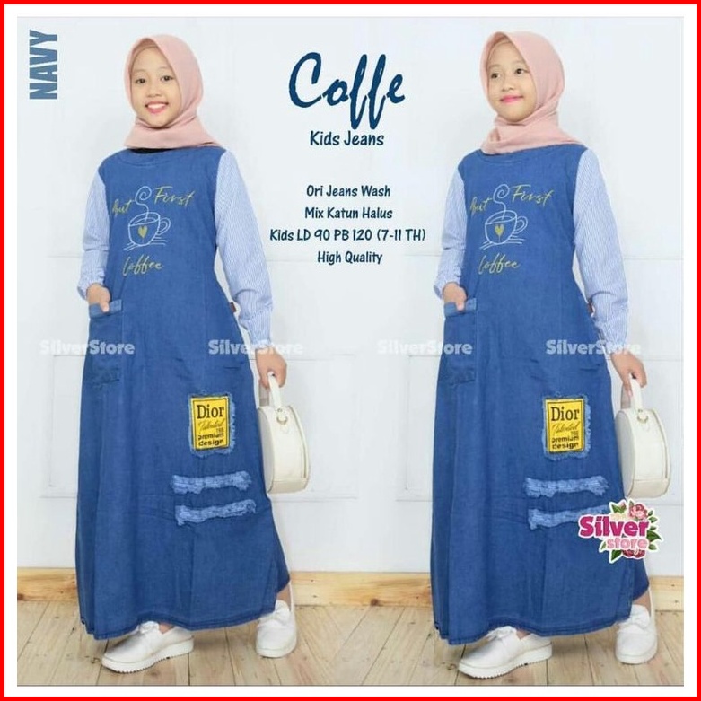 Dress Gaun Panjang Gamis Maxi Jeans Anak Perempuan Tanggung Usia 7 Sampai 11 Tahun