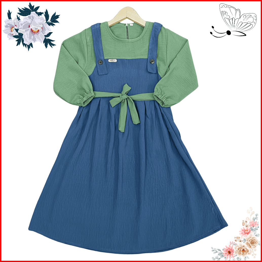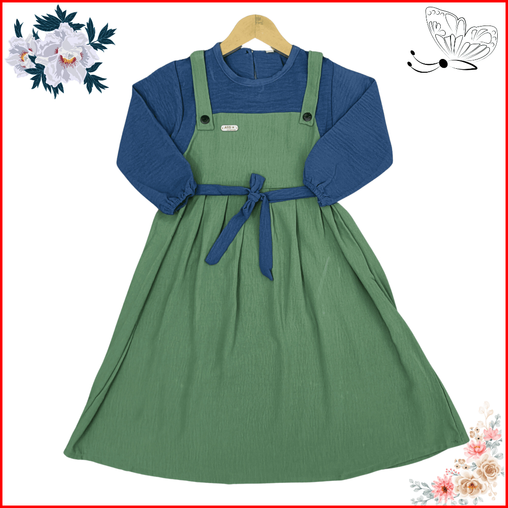 Alesha Dress Kids Anak Perempuan Usia 1-9 Tahun Bahan Crenkle Airflow Gamis Terbaru Dress Viral
