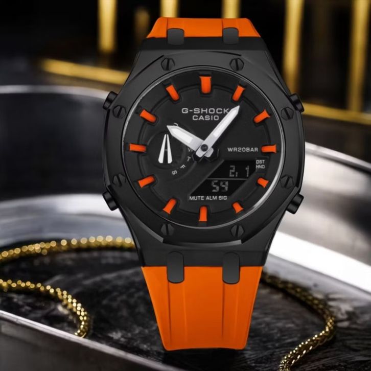 JAM TANGAN PRIA/WANITA G-SHOCK GM-2100 BLACK ORANGE FULL SET FREE ONGKIR