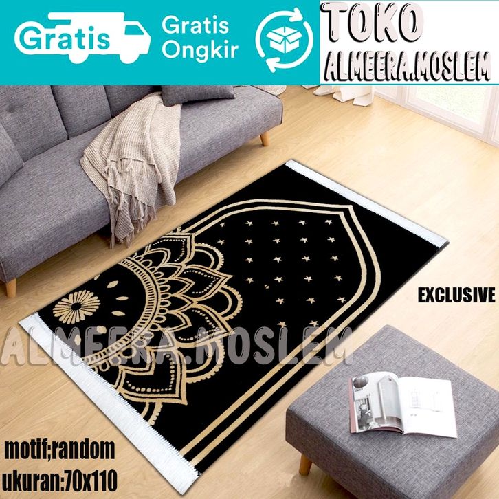 Sajadah Turki Premium Exclusive Kiswah Hitam Tebal Halus Perlengkapan Shalat Sajadah Turky Tebal Halus Ukuran 70x110cm