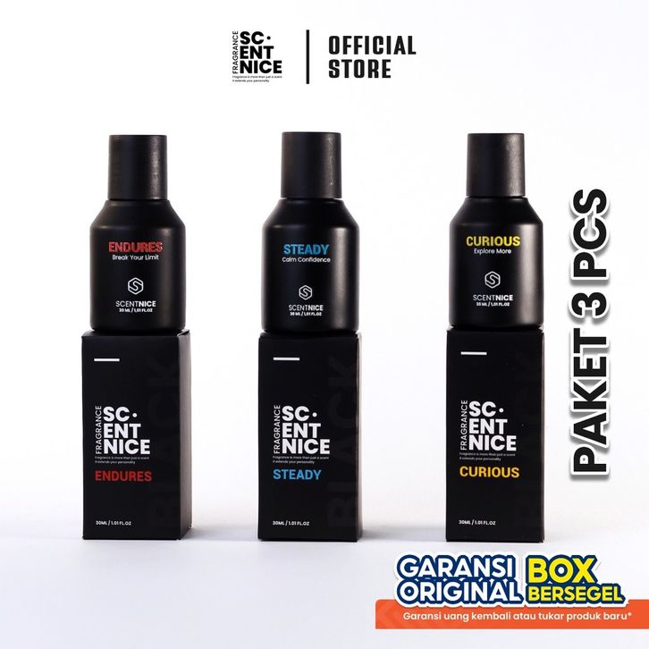 [Mall] SCENTNICE Black Series Paket Parfum Pria Bundling 3 Botol Endures Steady Curious Eau De Parfum 30ml