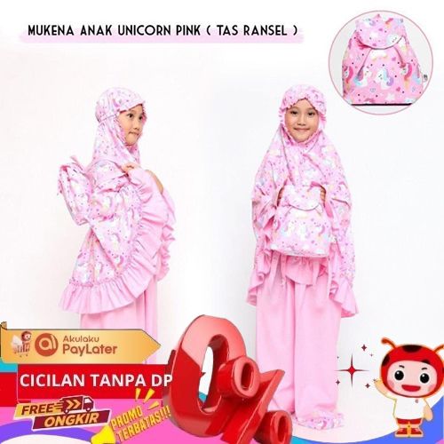 PROMO MUKENA ANAK KATUN UNICORN CUP PINK ( TAS RANSEL ) - XS