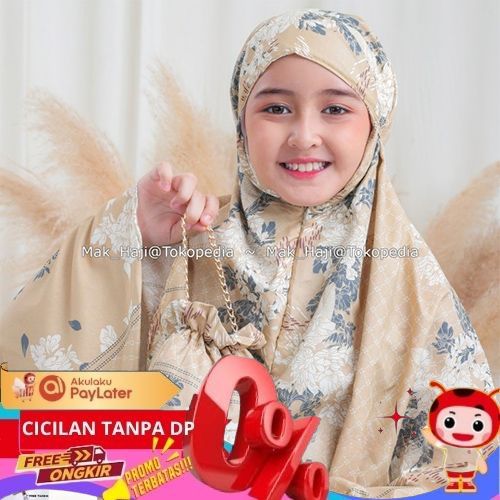 PROMO MAK.HAJI MUKENA ANAK TANGGUNG AZURA HASYA 2IN1 RESLETING TRAVEL KATUN MOTIF - CREAM RASYA